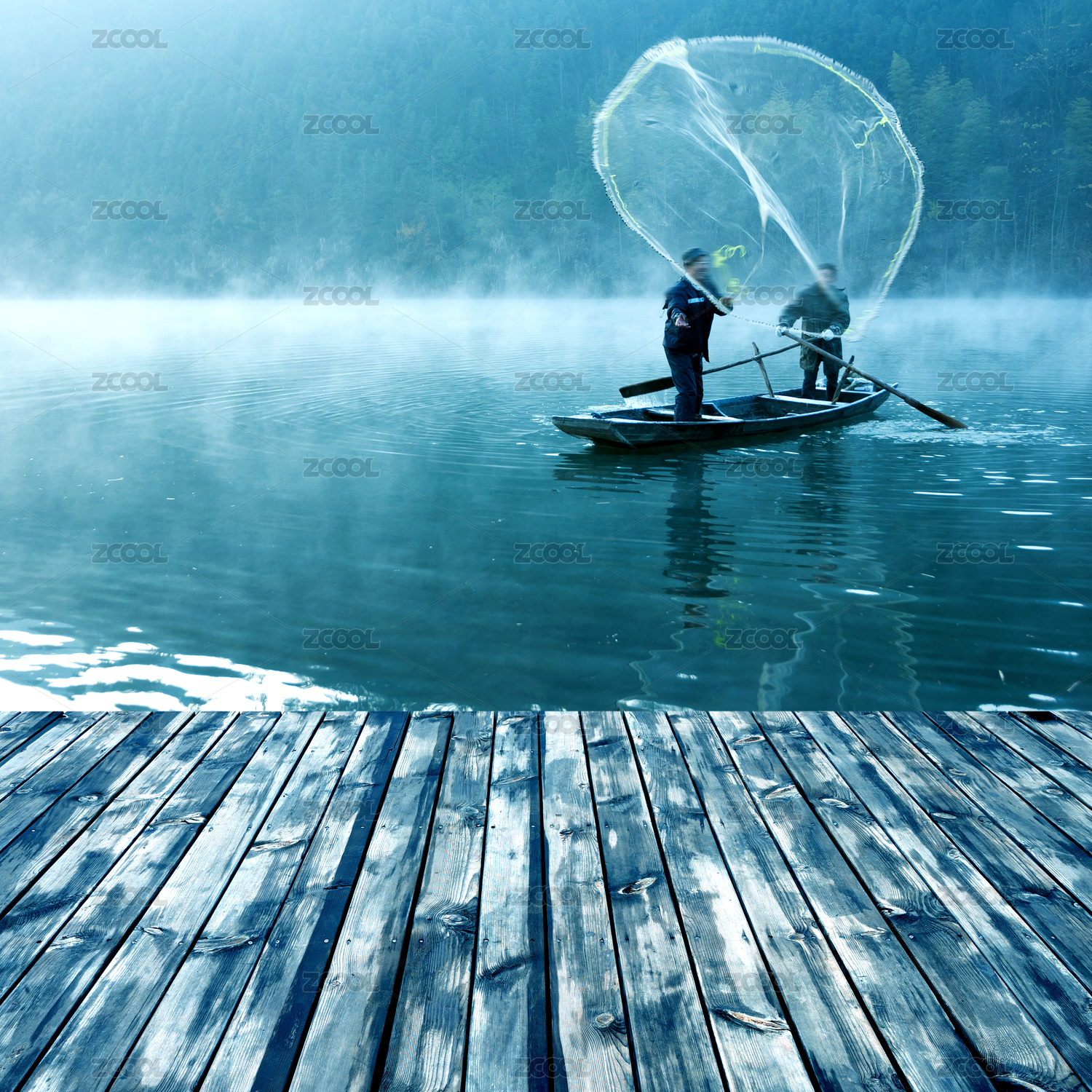 漁民清晨撒網(wǎng)捕魚
