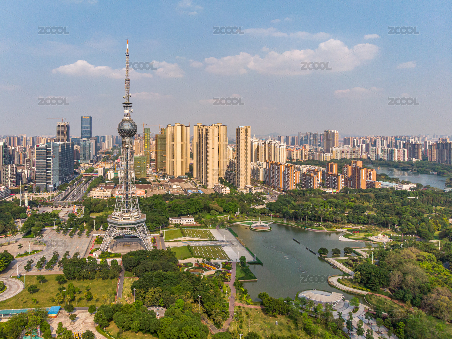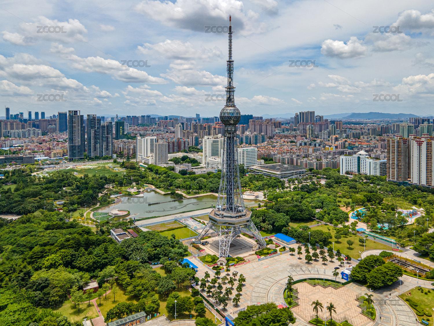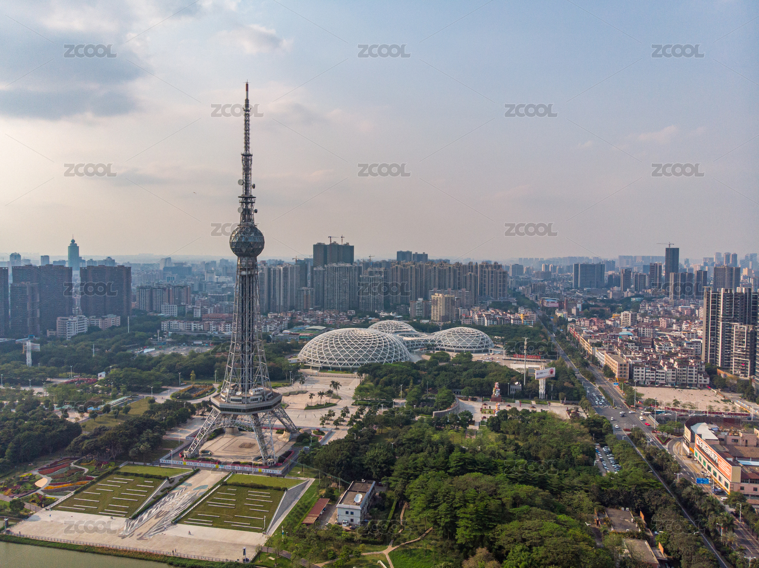 佛山城市風(fēng)光,嶺南明珠體育館和電視塔