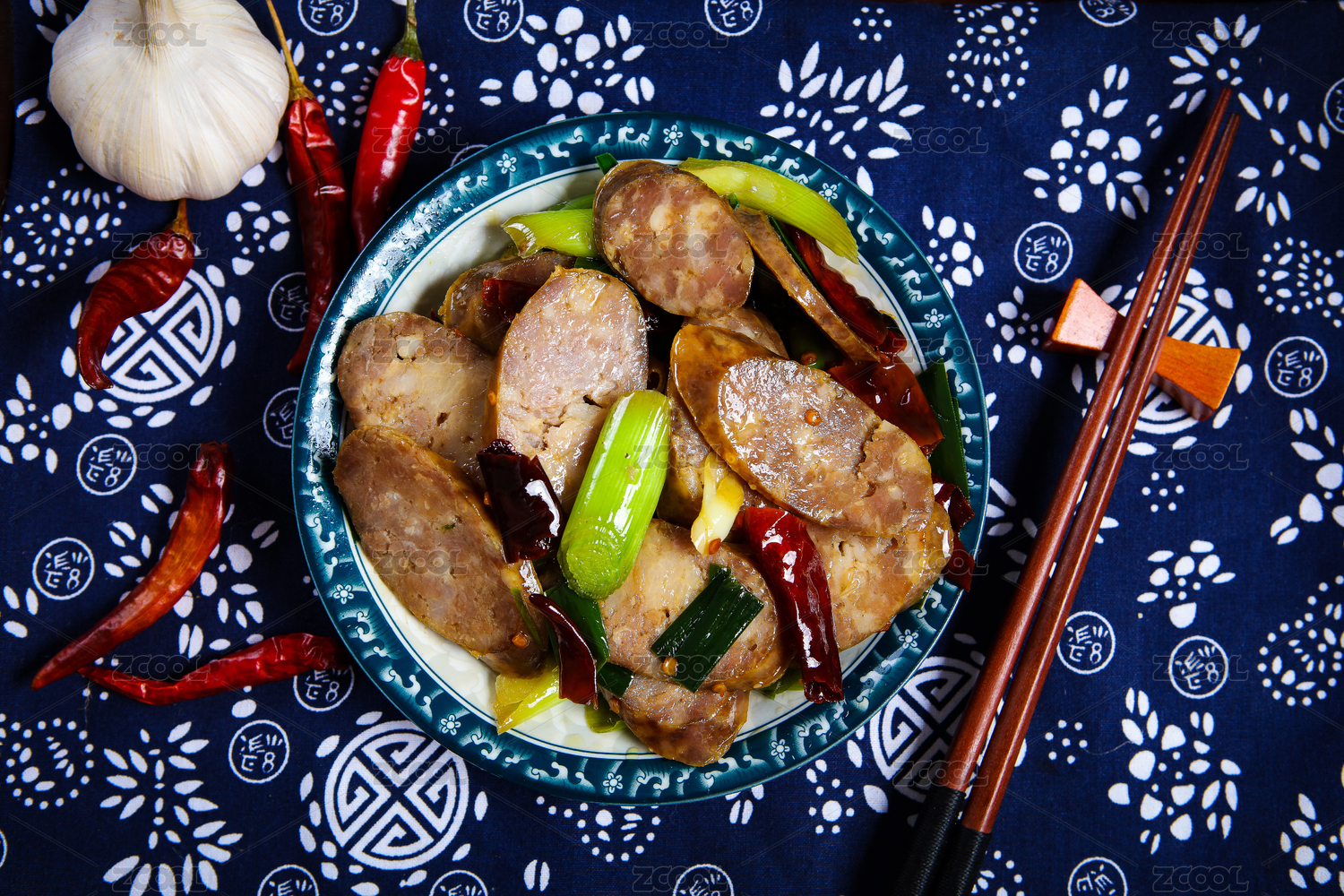 一盤(pán)青蒜辣椒炒臘腸