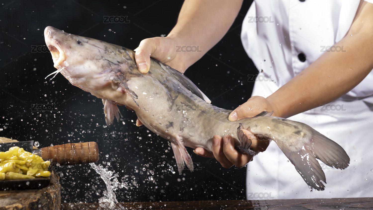 廚師手拿鱖魚