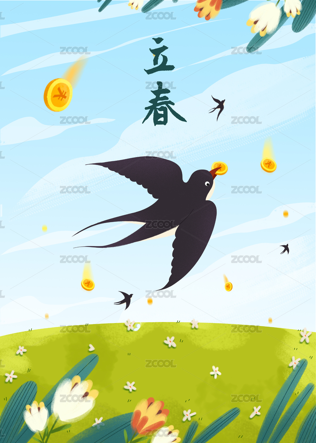 立春時節(jié)燕子攜著金幣在天空飛翔