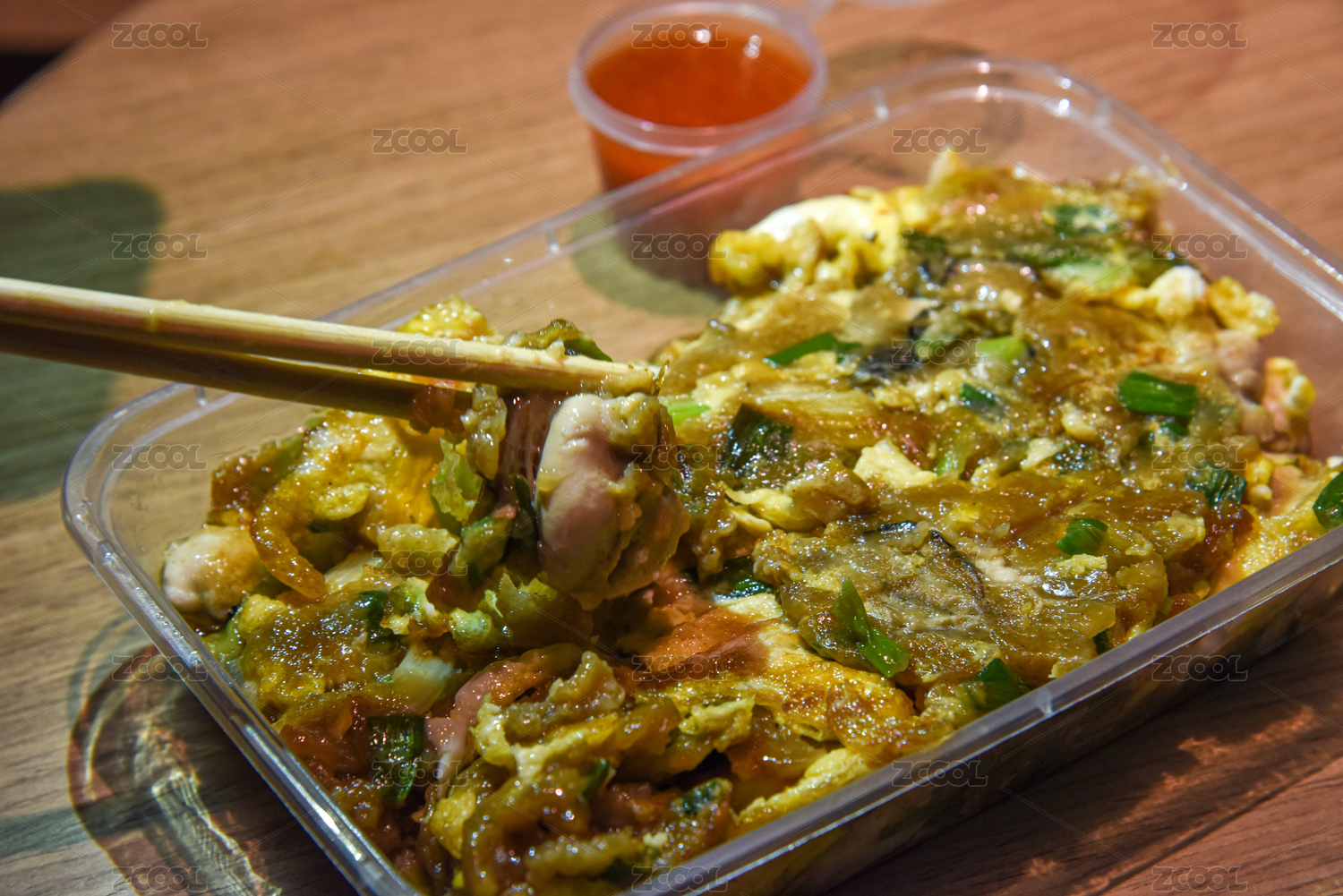 生蠔煎蛋配醬料蔥花