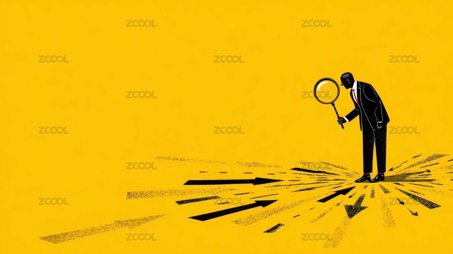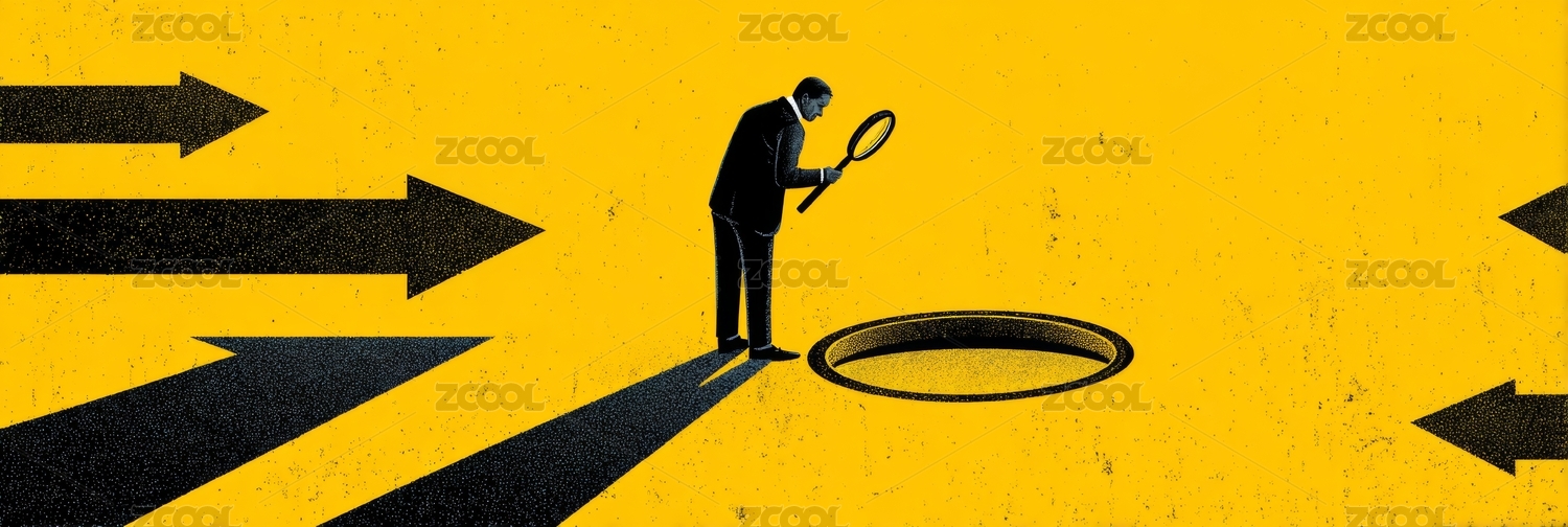 黑色鉛筆黑金的尋找目標(biāo)的男士微縮創(chuàng)意圖