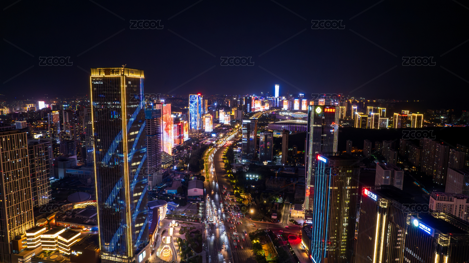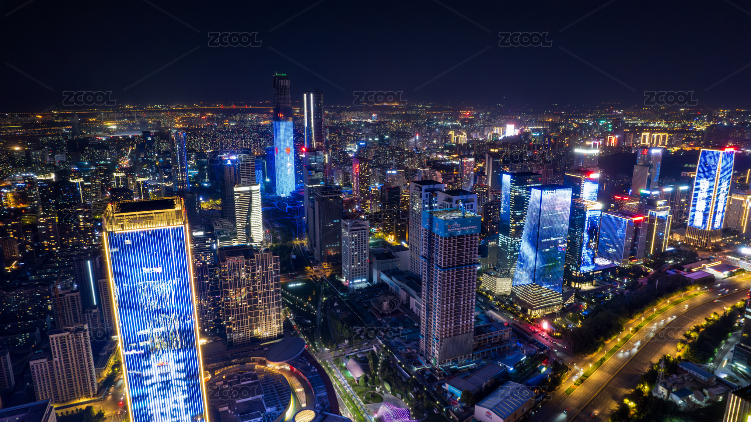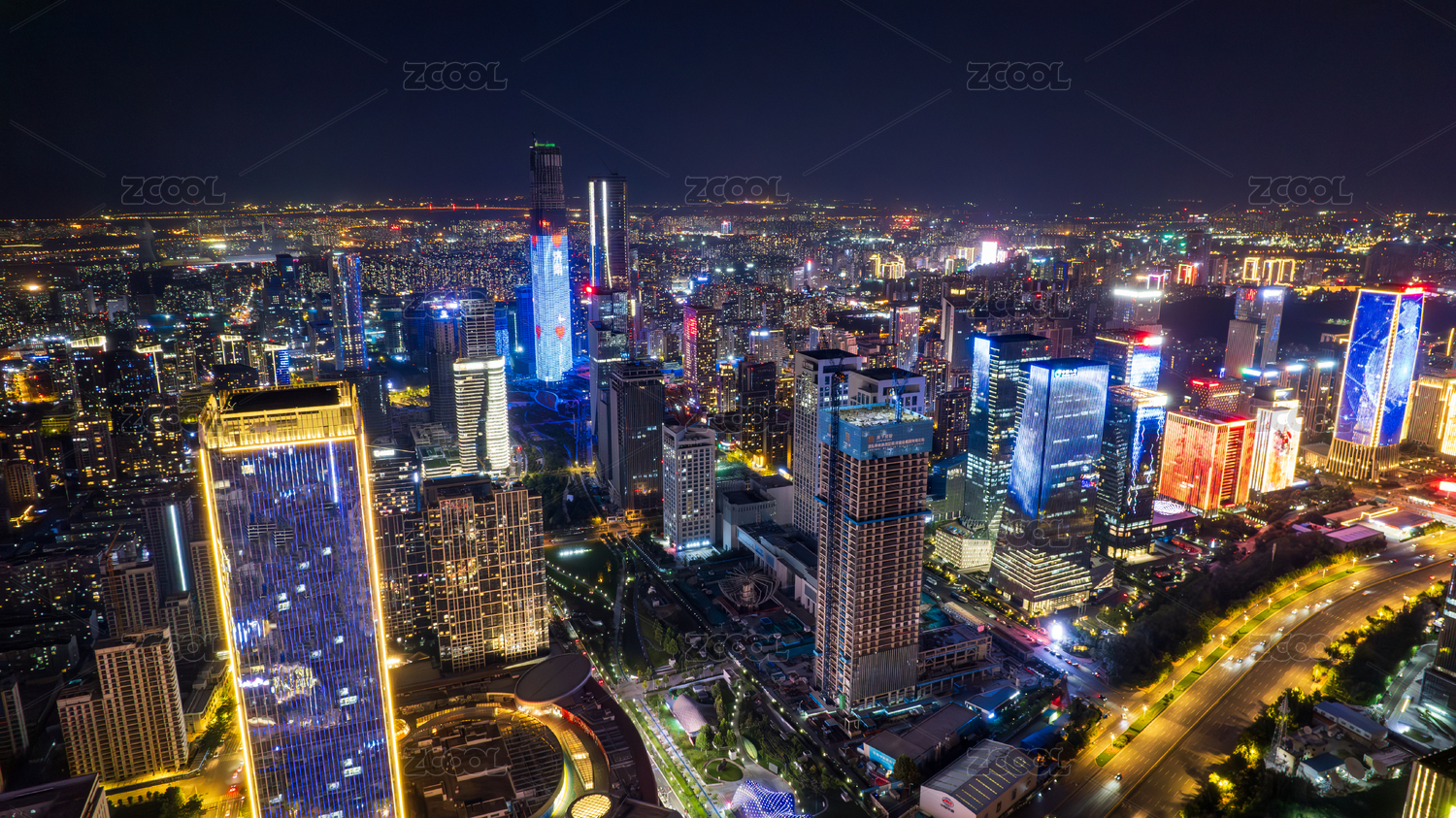 山東濟(jì)南經(jīng)十路夜景航拍城市天際線