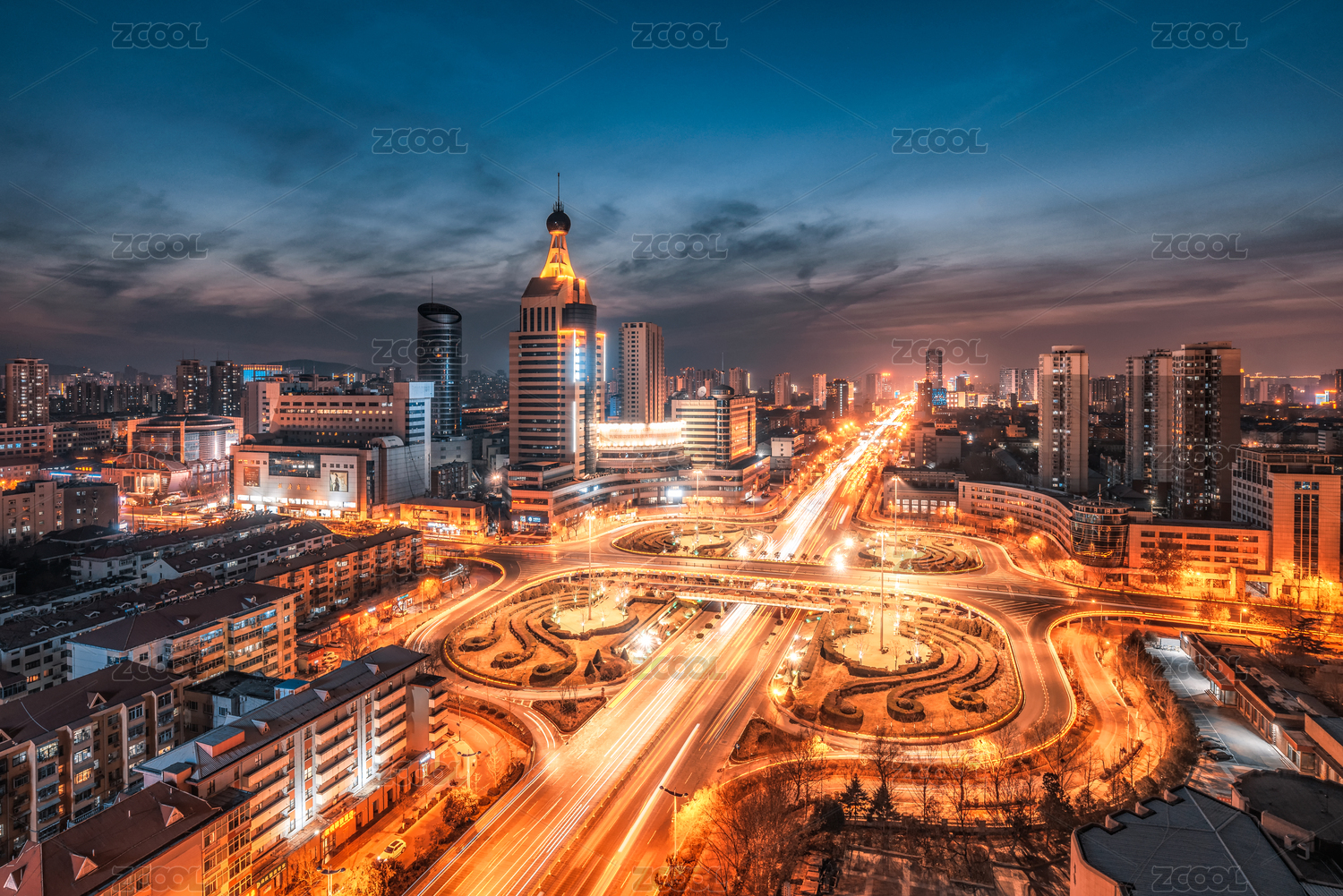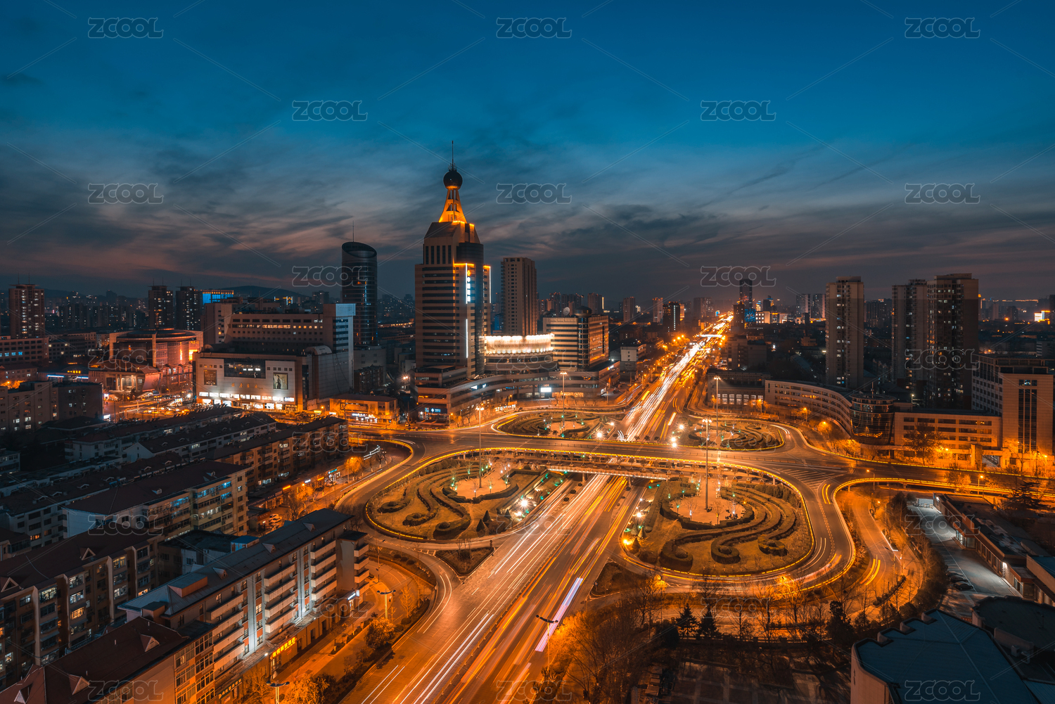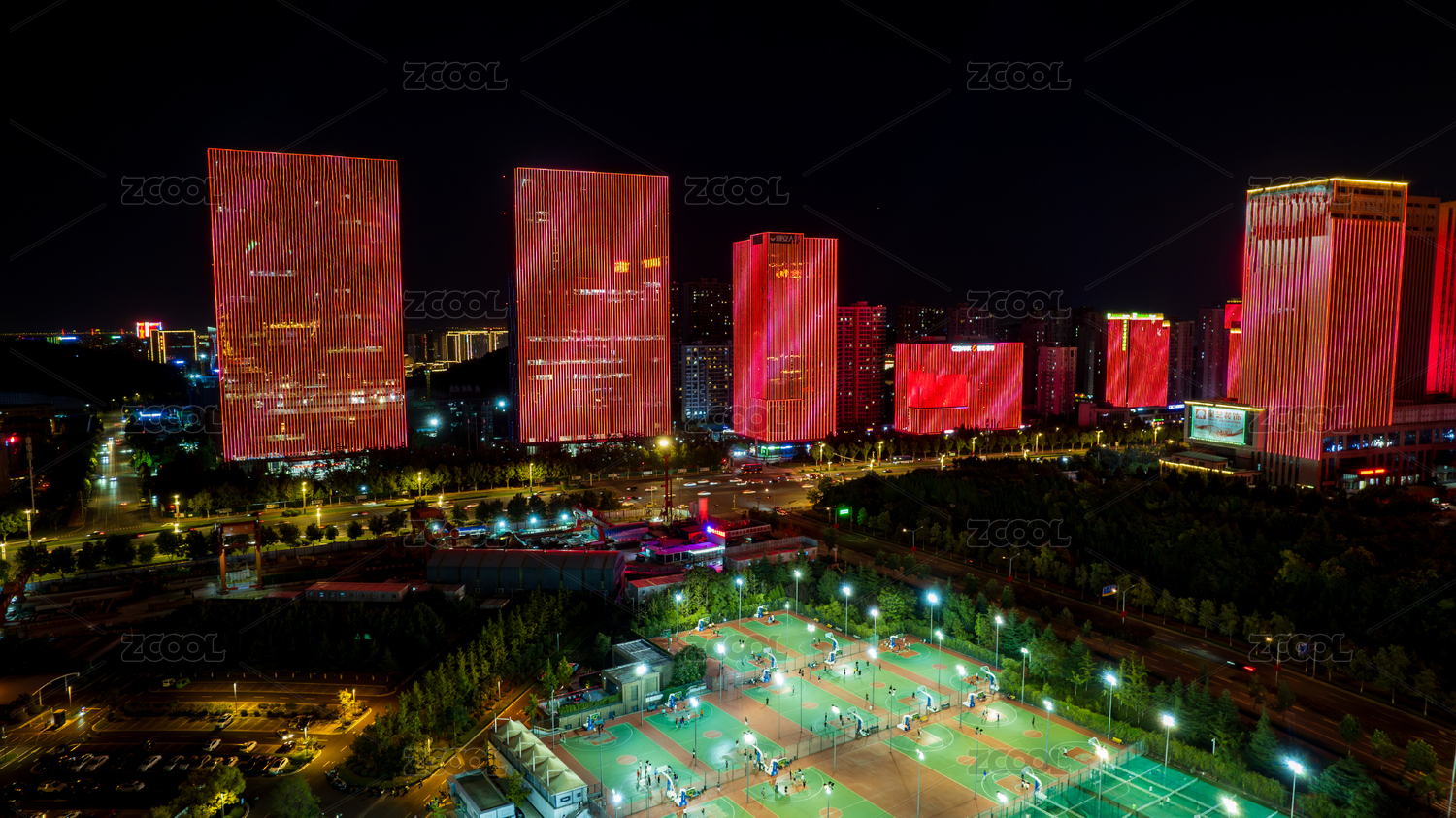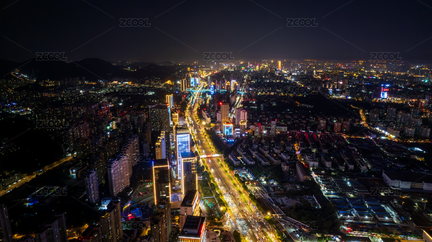 山東濟(jì)南經(jīng)十路夜景航拍城市天際線