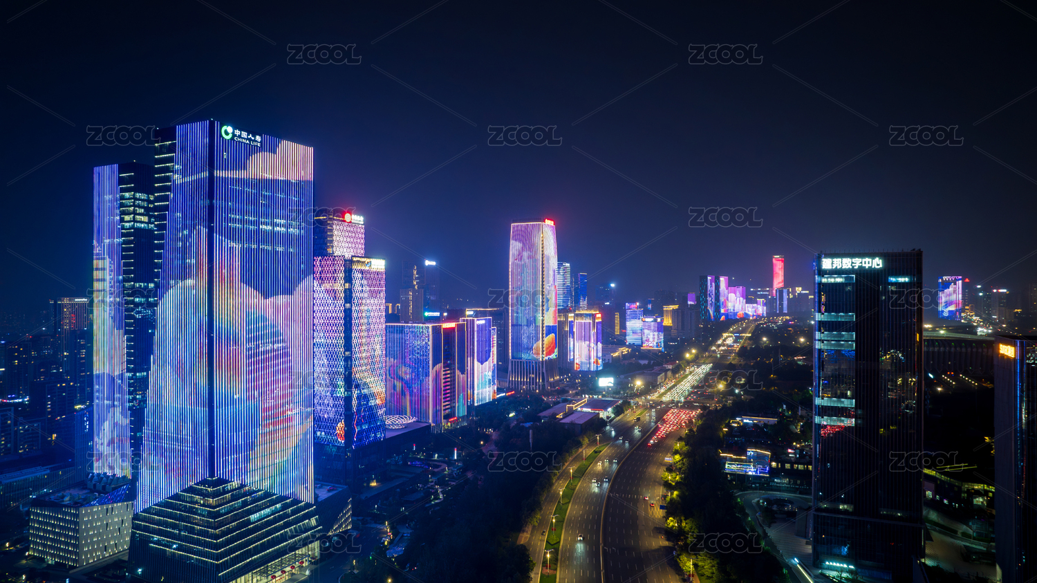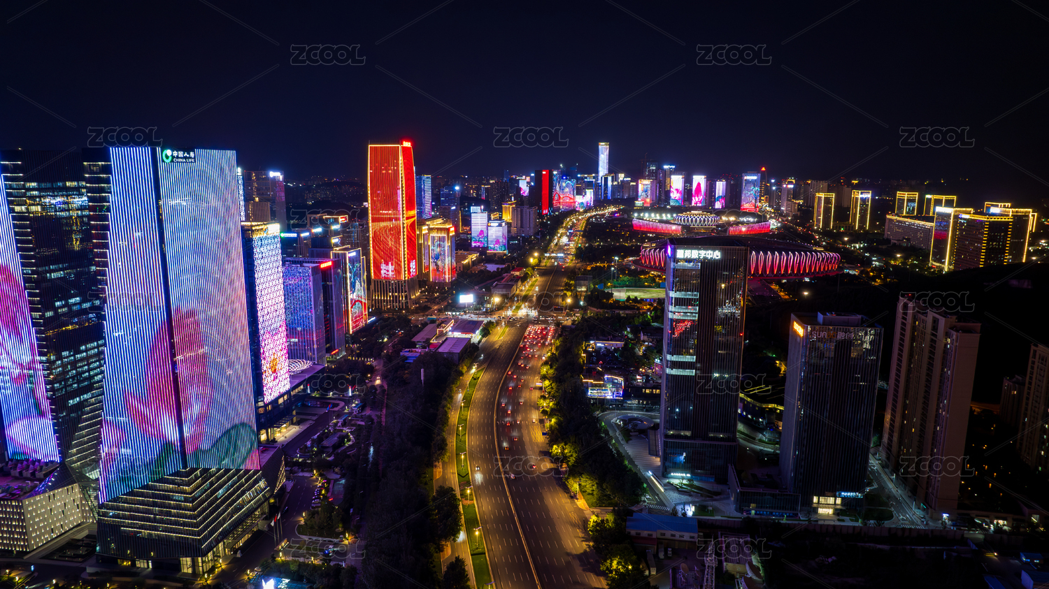 山東濟(jì)南經(jīng)十路CBD夜景航拍車流燈光秀