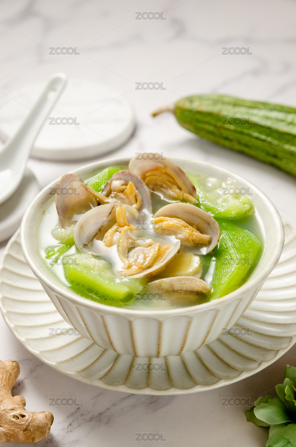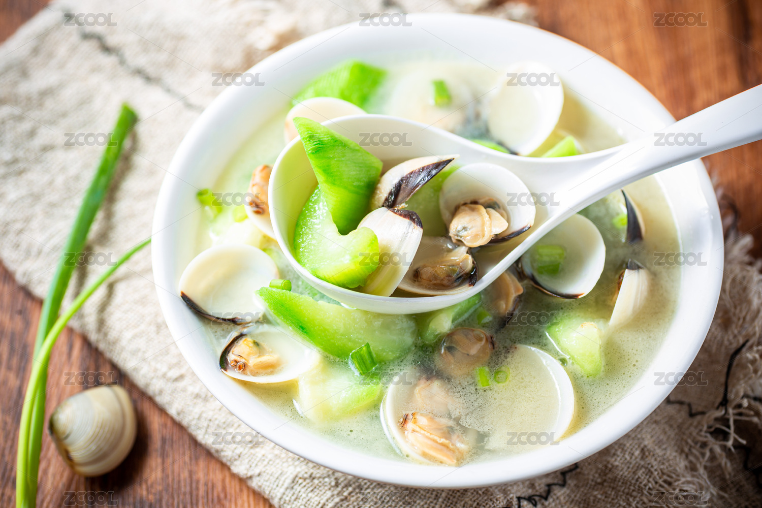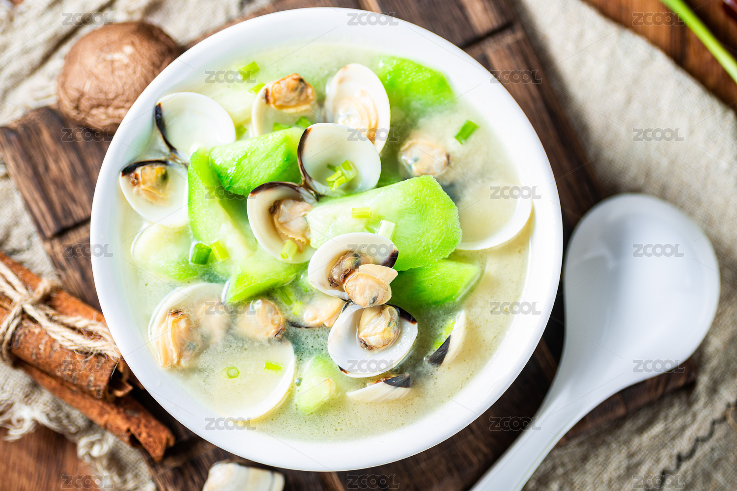 一碗美味的家常海鮮蔬菜湯絲瓜花甲湯