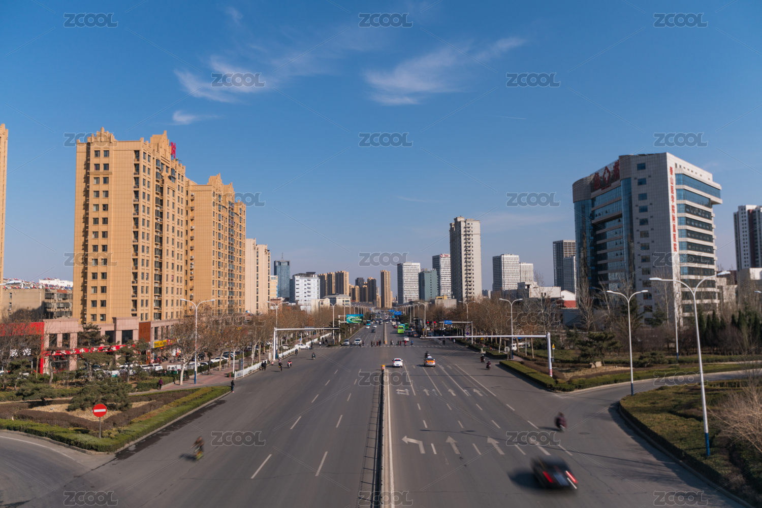 泰安泰山城市主干道商務(wù)區(qū)景色