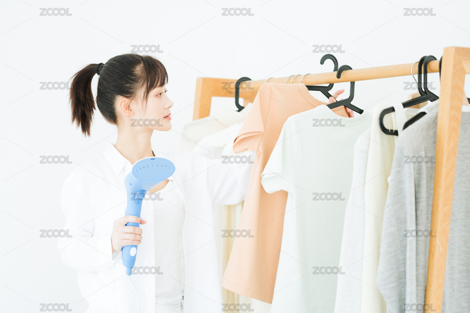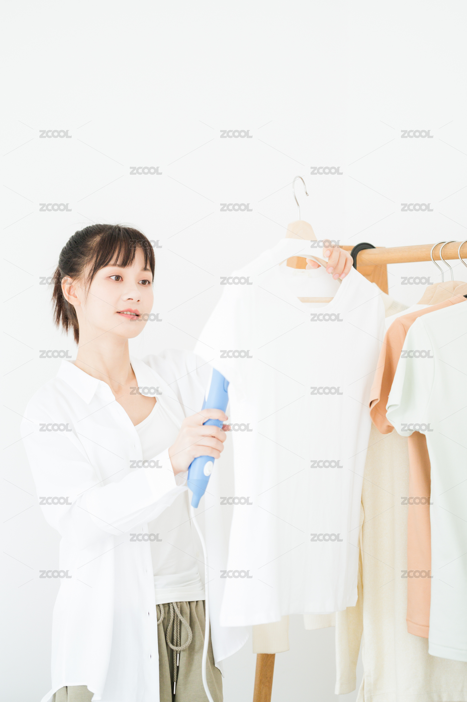 工字夾文具晾曬衣服的女性