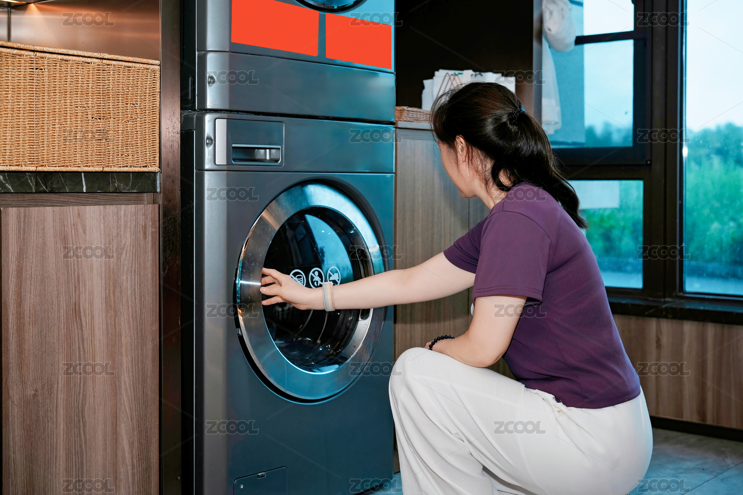 女性操作洗衣機(jī)場(chǎng)景