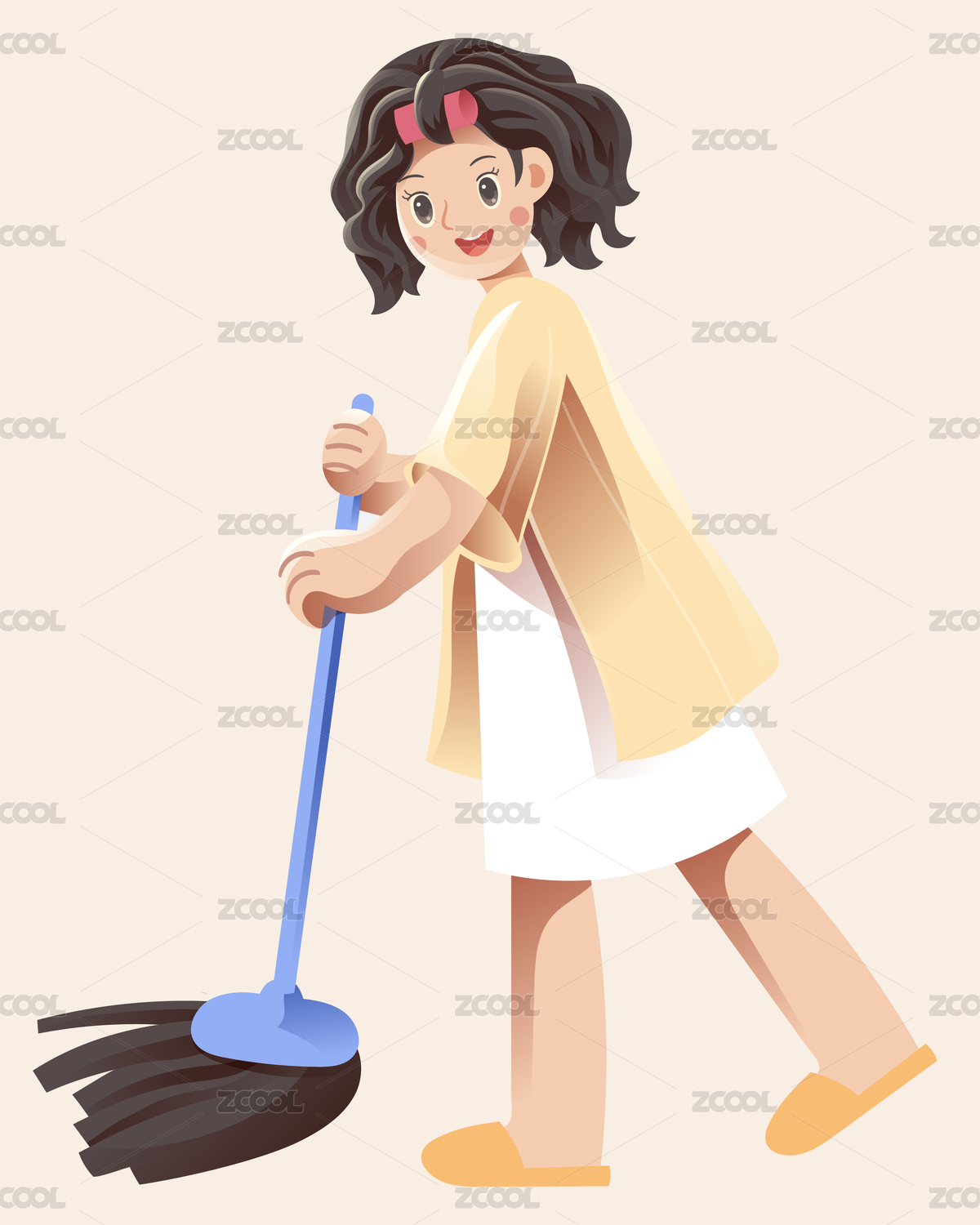 拖地的女人矢量插畫