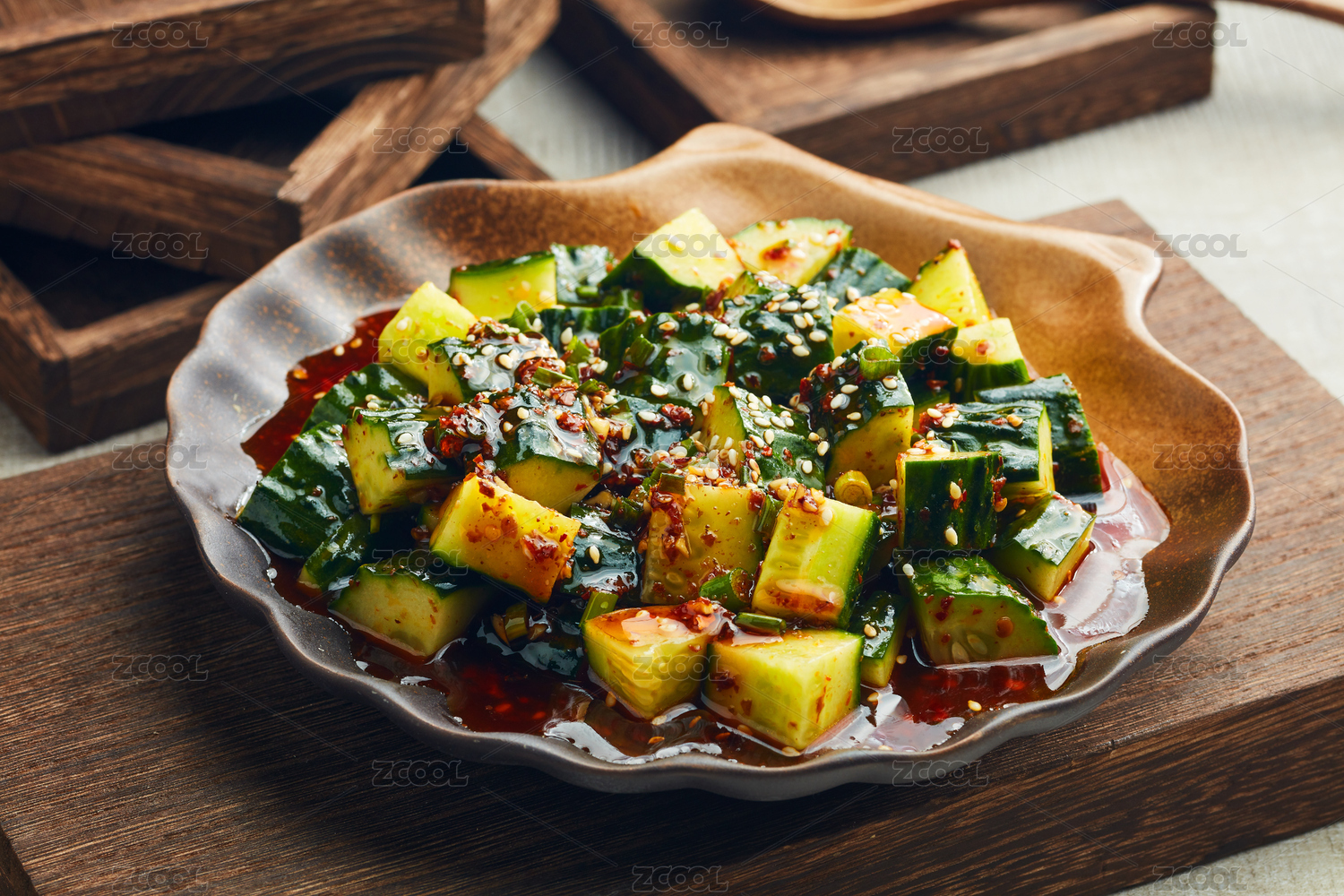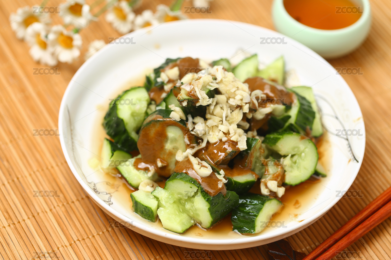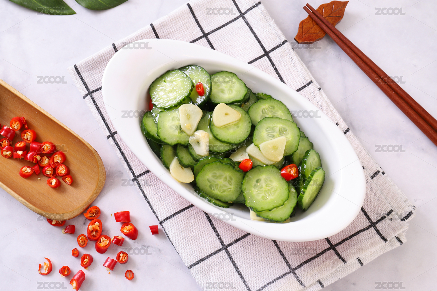 盤子里川菜涼菜蒜泥黃瓜蒜蓉黃瓜涼菜拍黃瓜