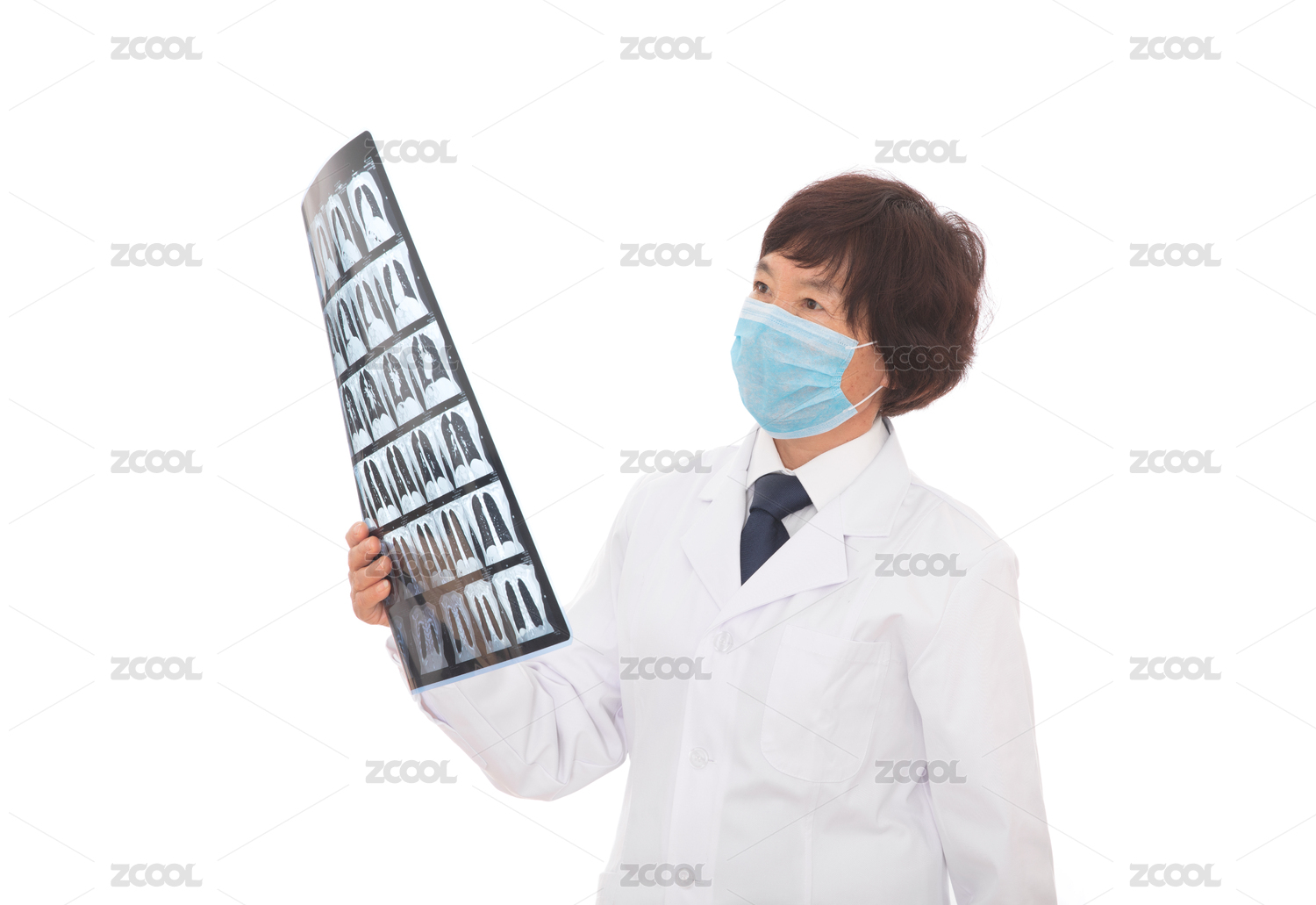 戴著口罩的呼吸科專(zhuān)家在看肺部X光片