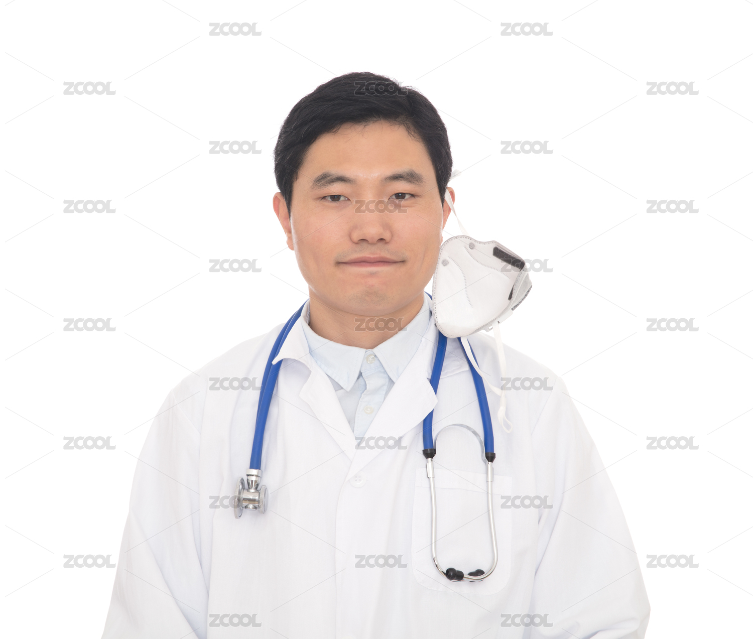 摘開(kāi)口罩面帶微笑的男醫(yī)生