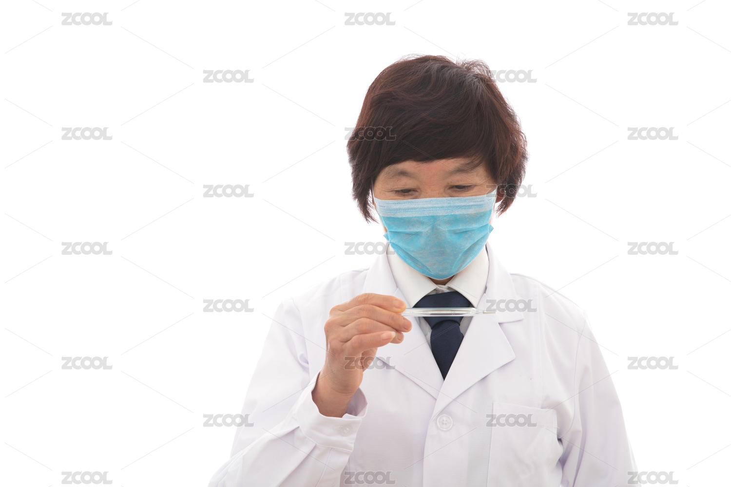 戴著口罩的女大夫查看體溫計(jì)