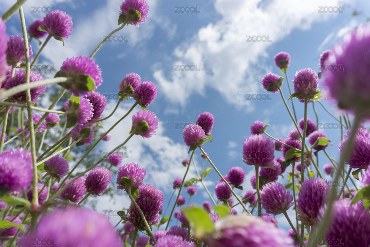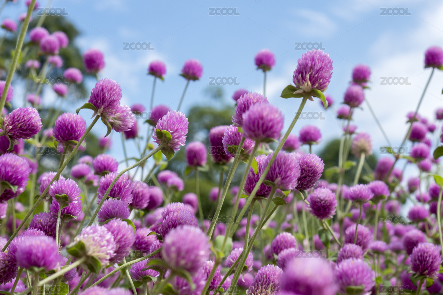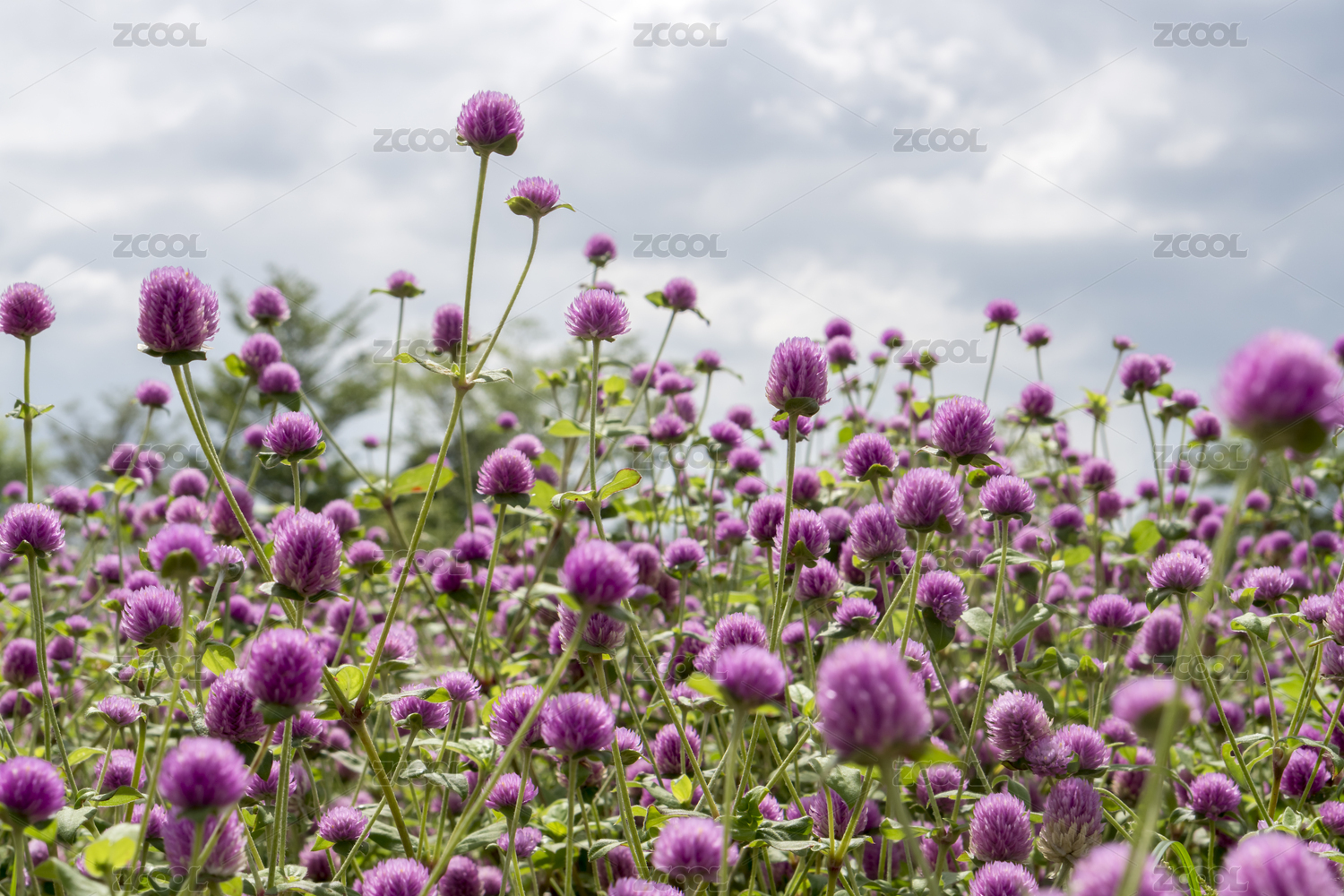 下午的陽(yáng)光照射在粉紫色的千日紅花上