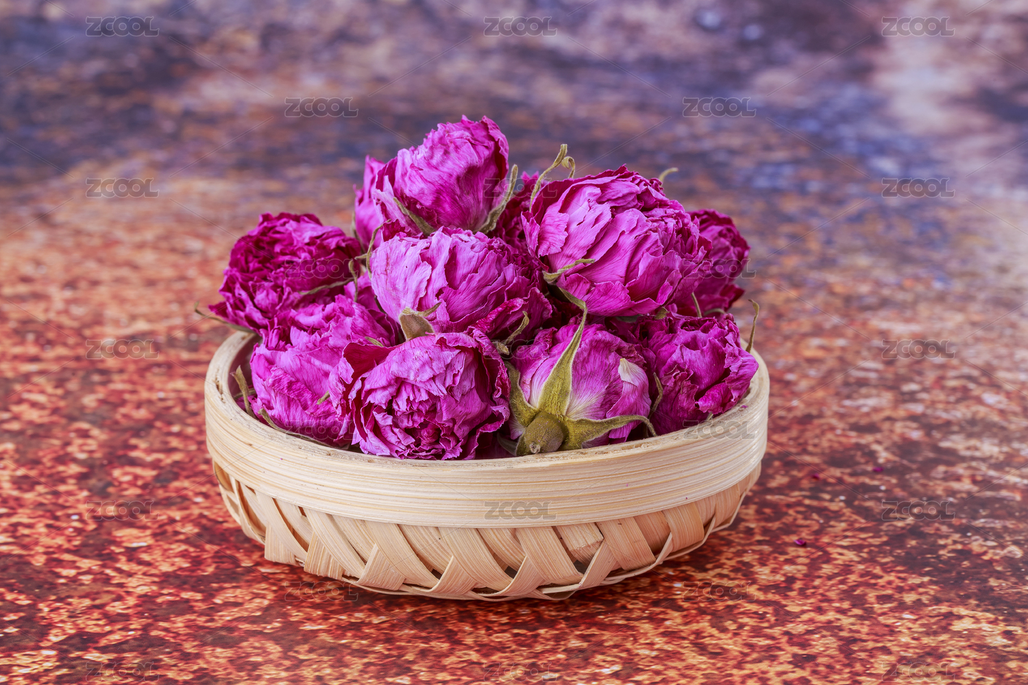 粉紫色的干玫瑰花茶