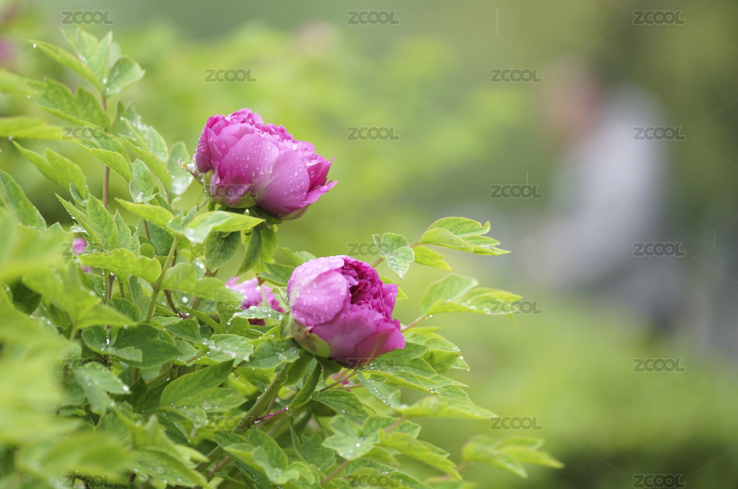 兩朵粉紫色的牡丹花