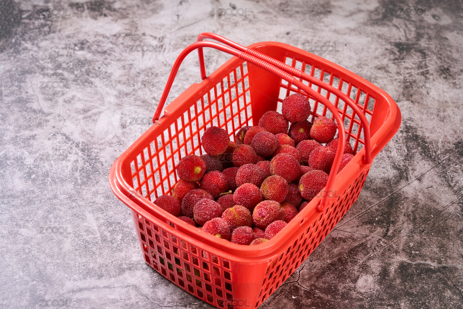 一筐成熟的紅色水果仙居黑炭楊梅