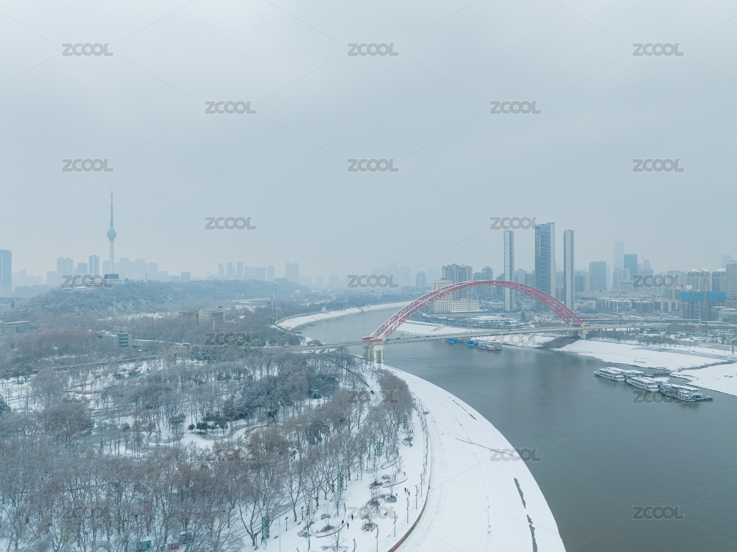 武漢漢陽江灘和南岸嘴公園雪景風(fēng)光