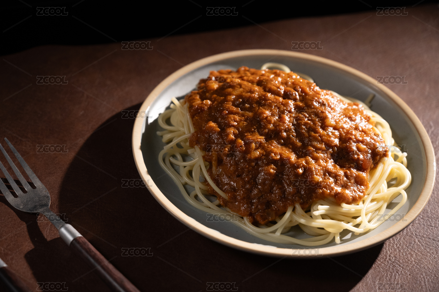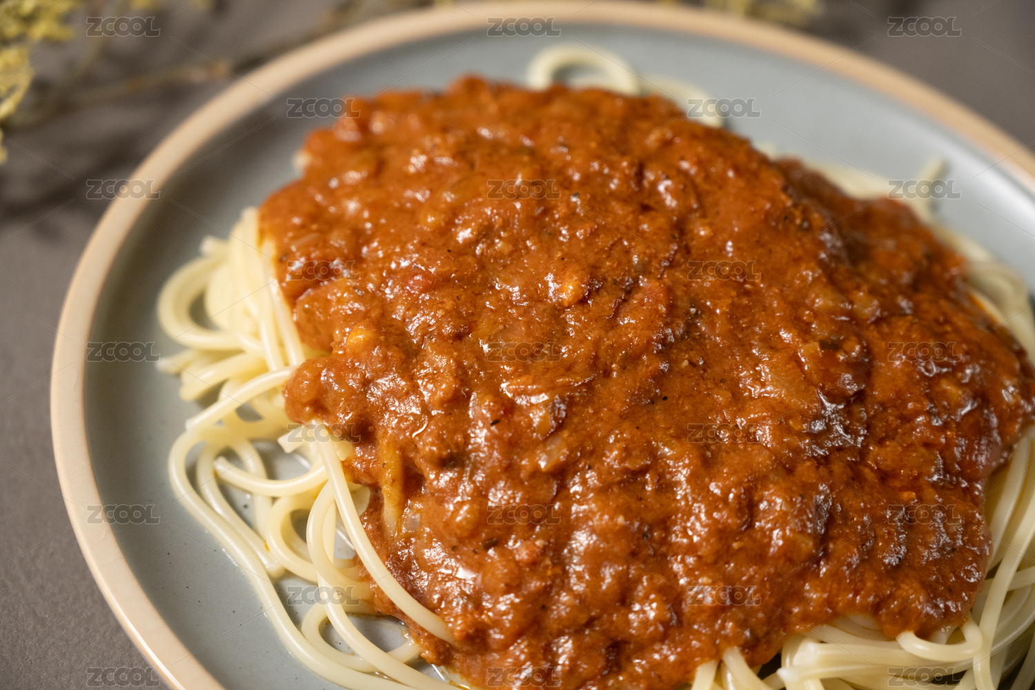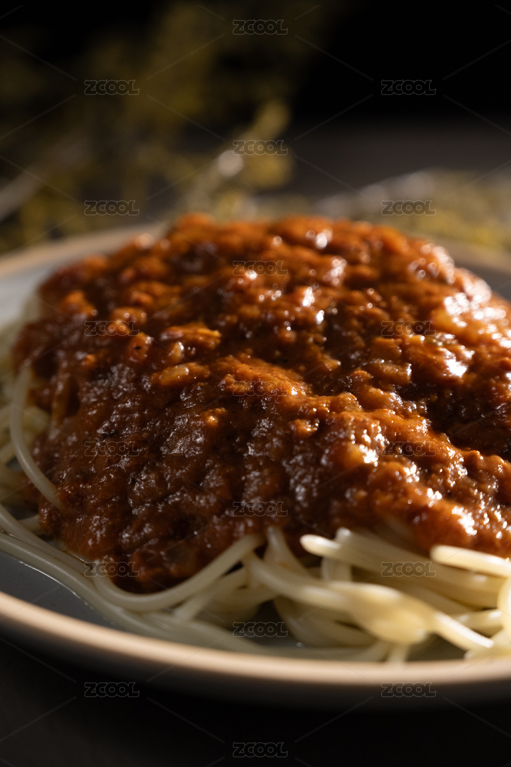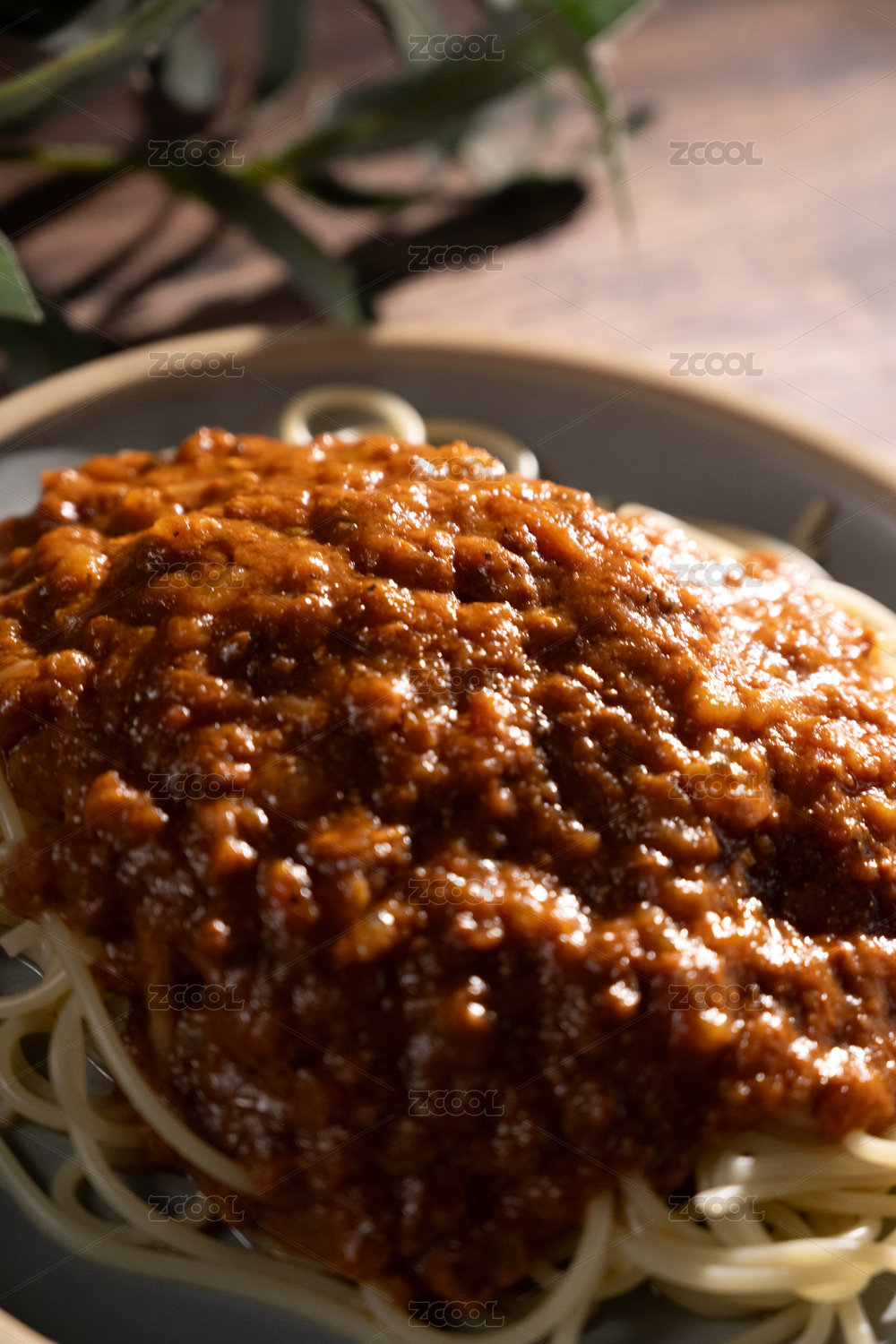 桌面上的盤子里的美味可口哦的肉醬意粉