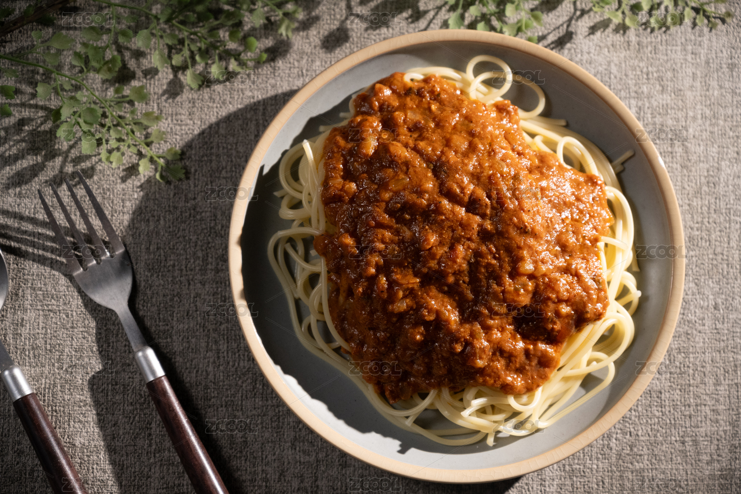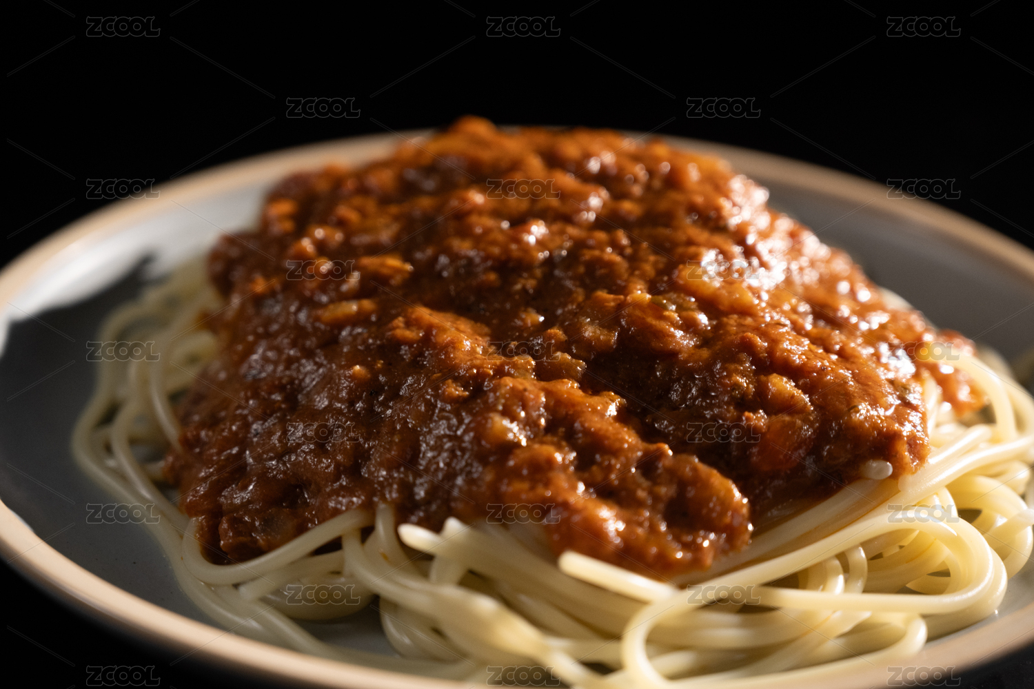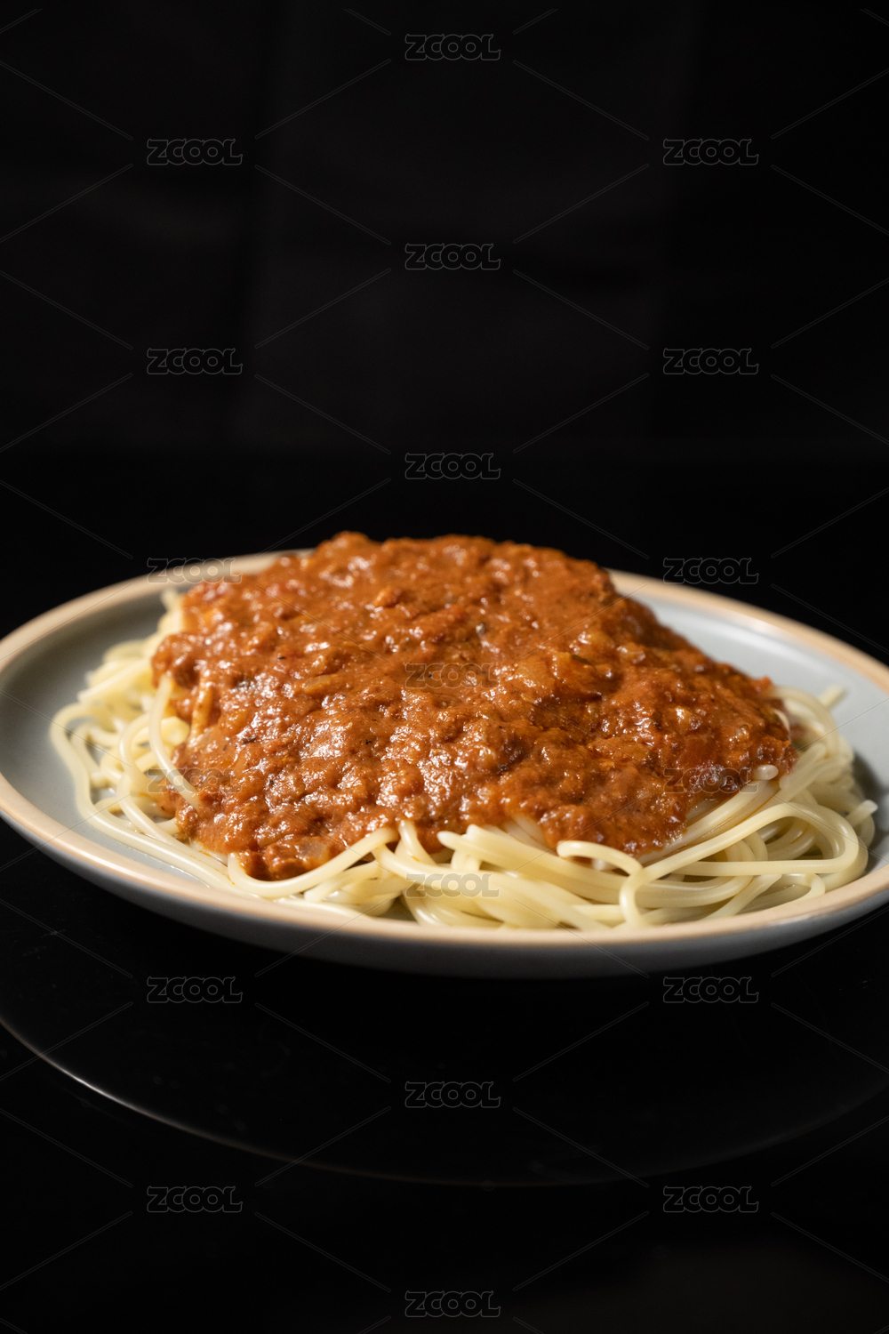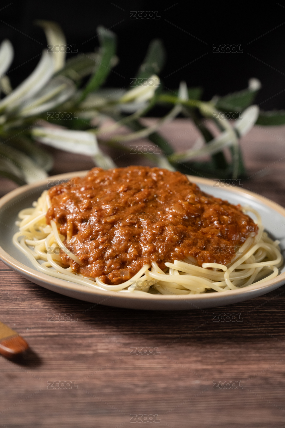 桌面上的盤子里的美味可口哦的肉醬意粉