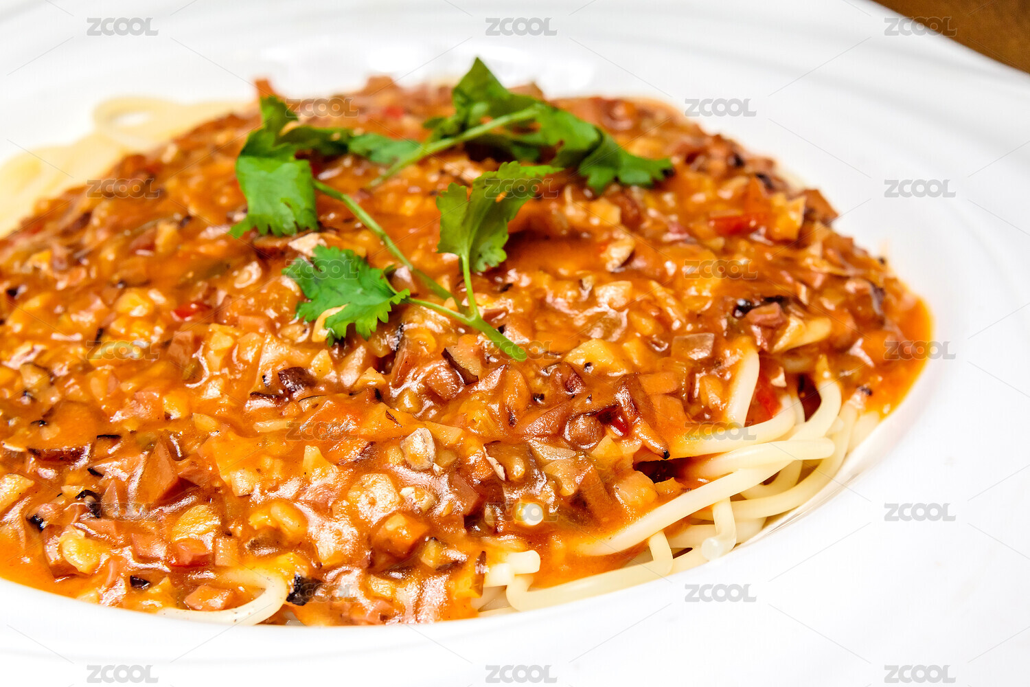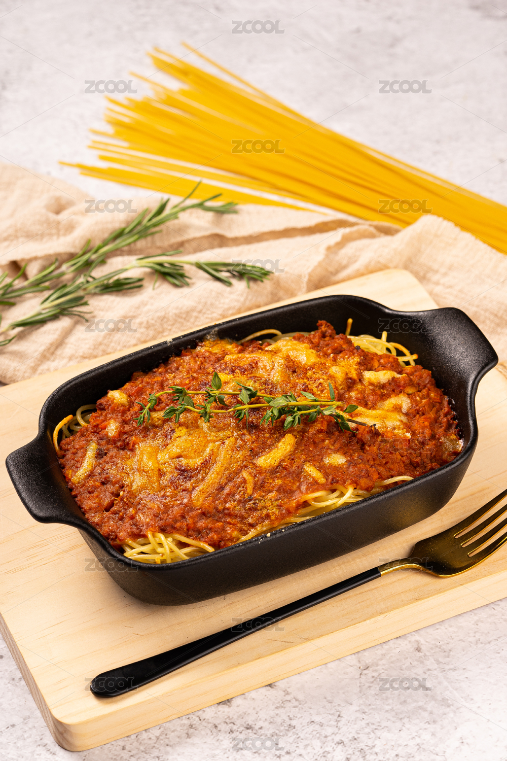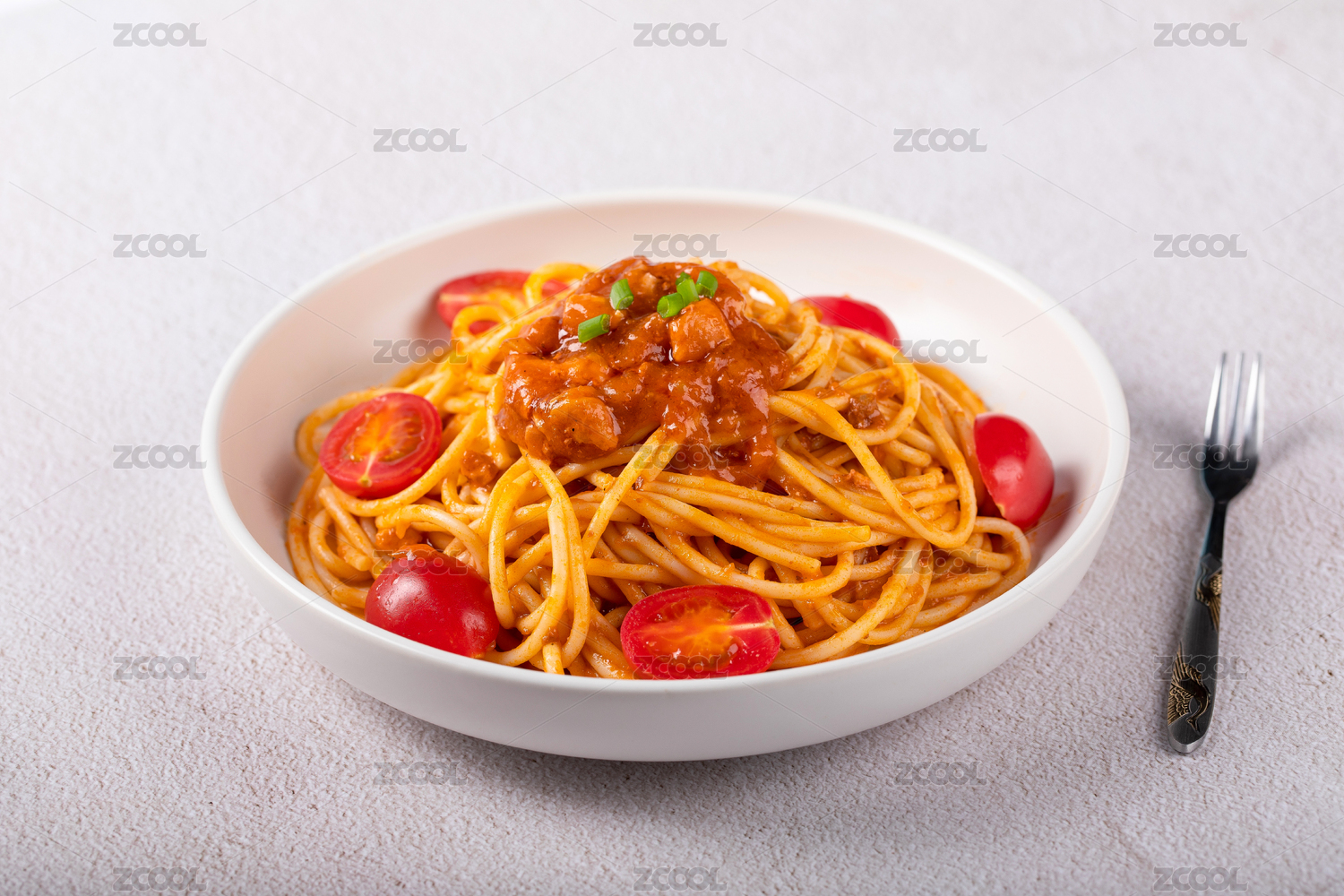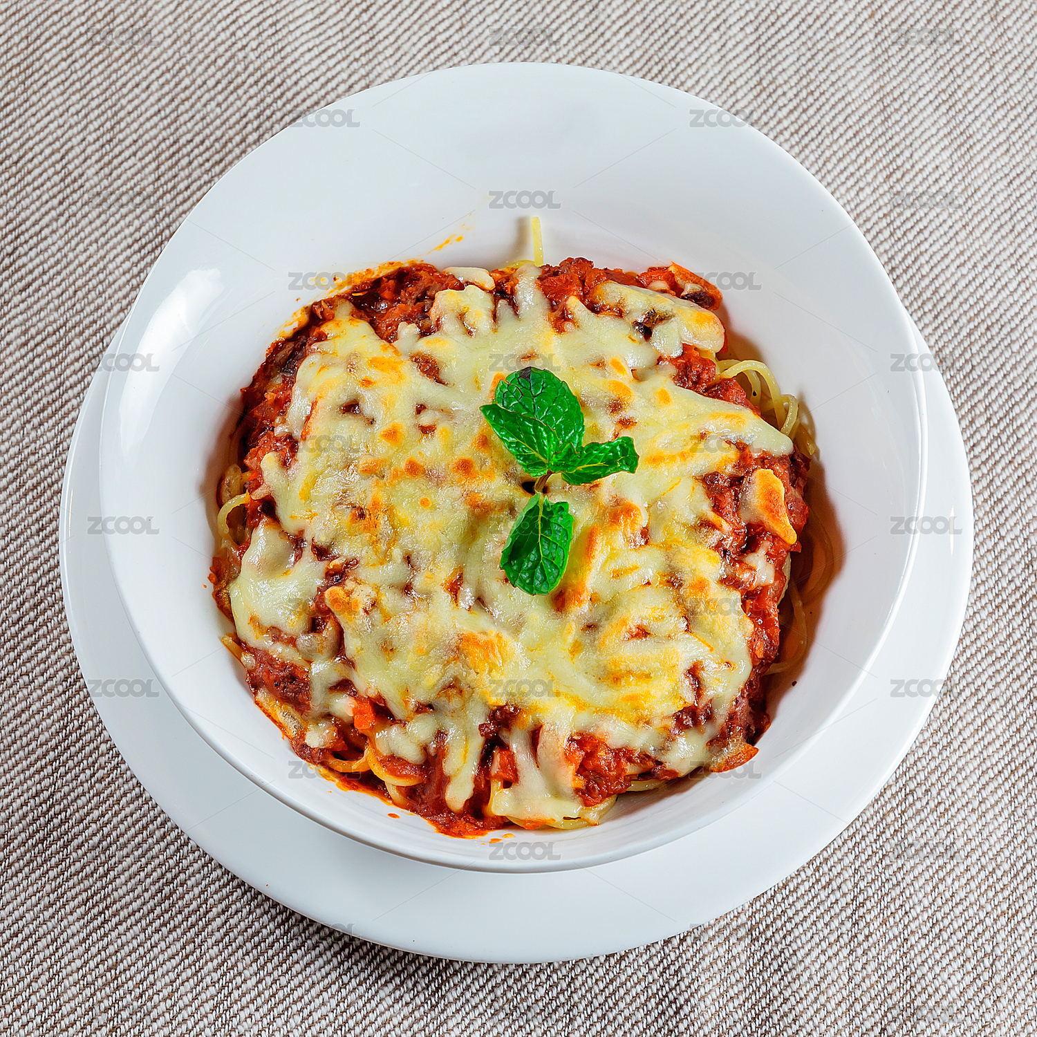 桌面上的盤子里的美味可口哦的肉醬意粉