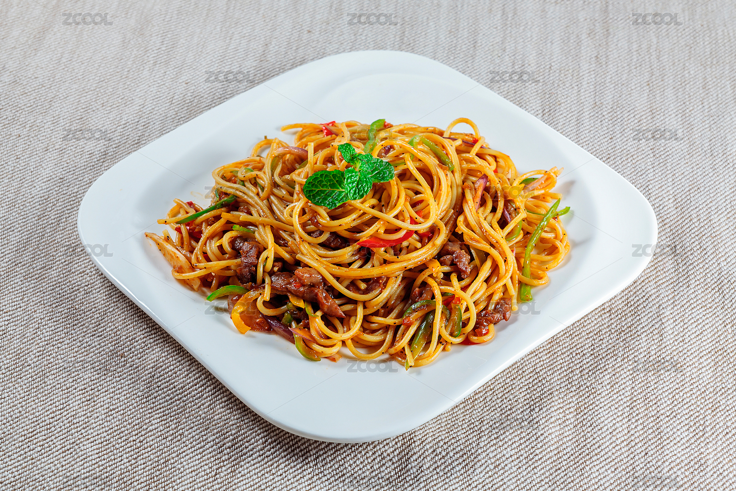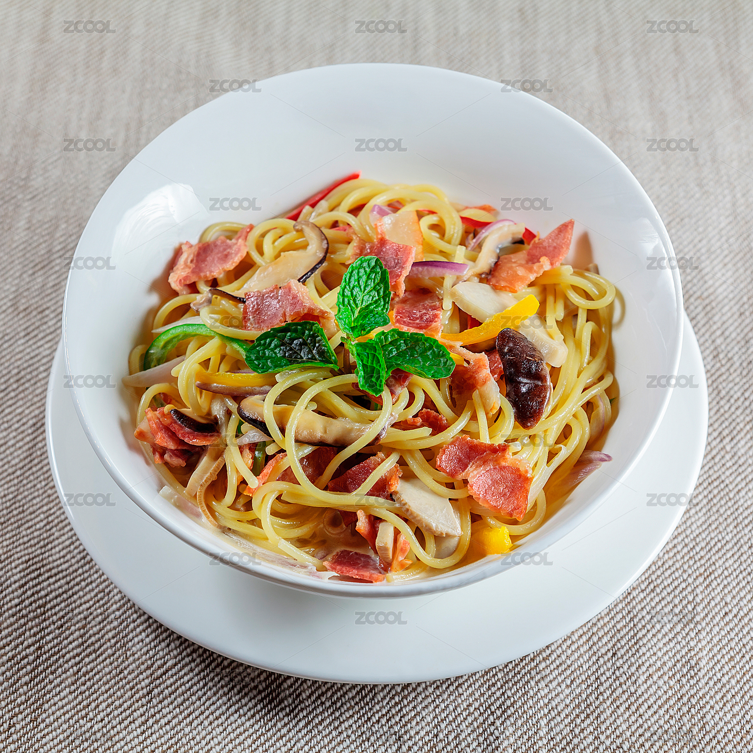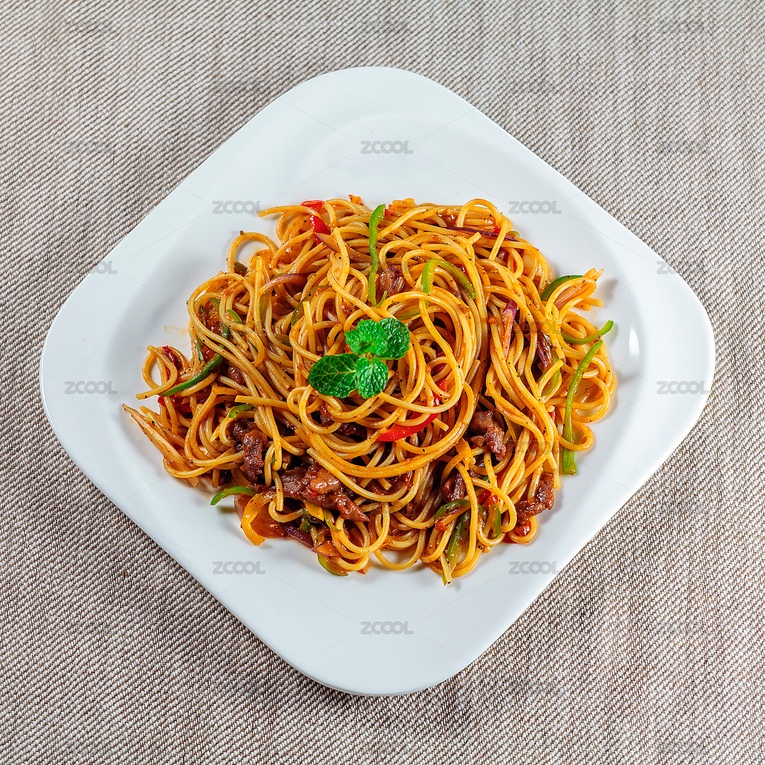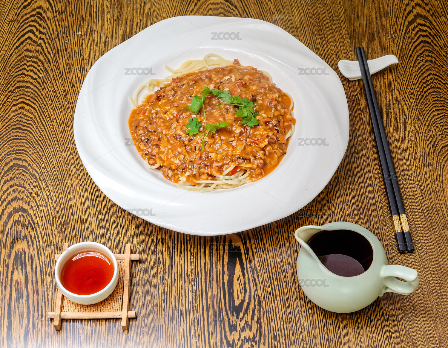 桌面上的盤子里的美味可口哦的肉醬意粉