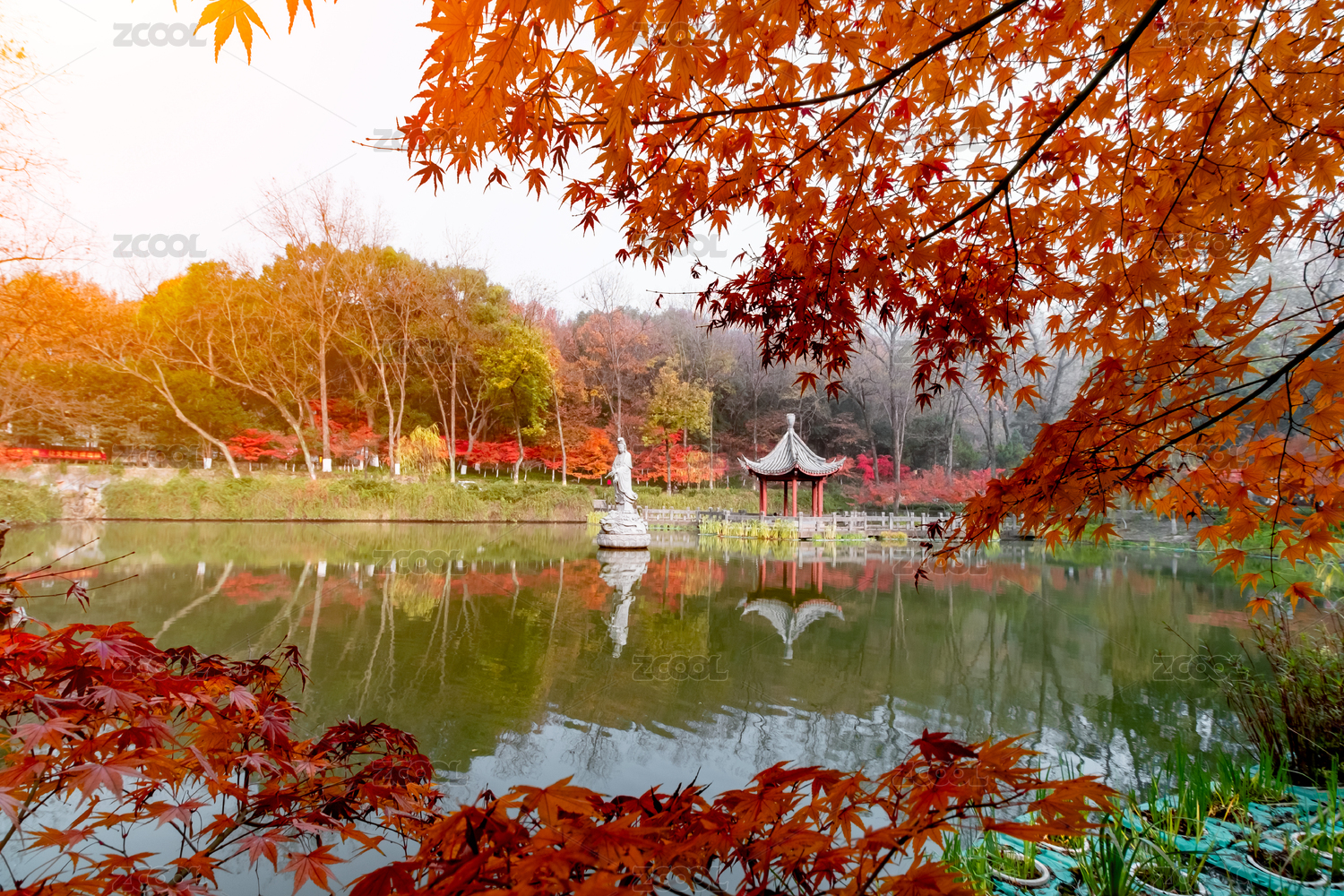 中國(guó)福建省福州西禪寺,湖中央的觀音塑像