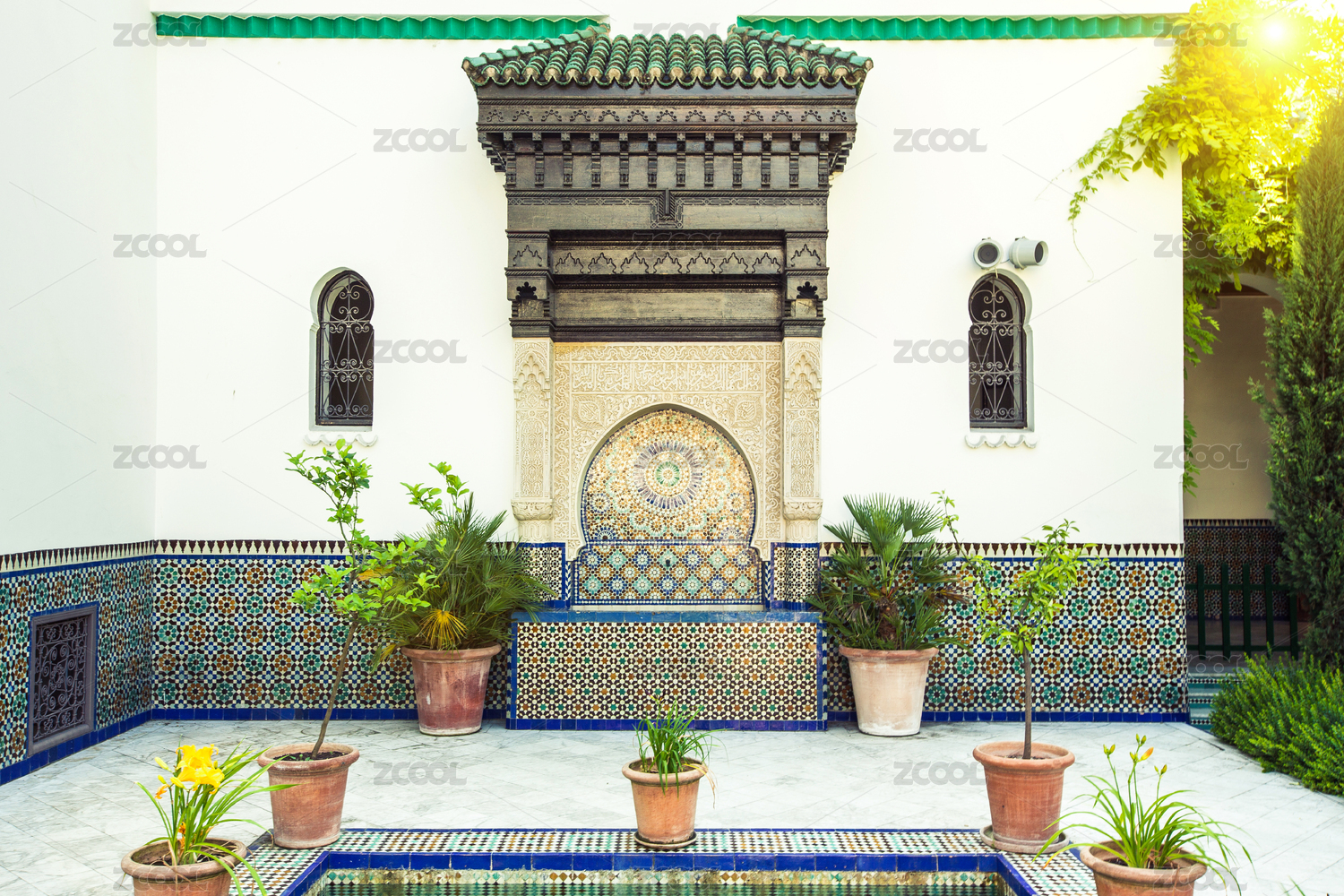 法國(guó)巴黎第五區(qū)著名古跡巴黎大清真寺內(nèi)部精美的裝飾造型