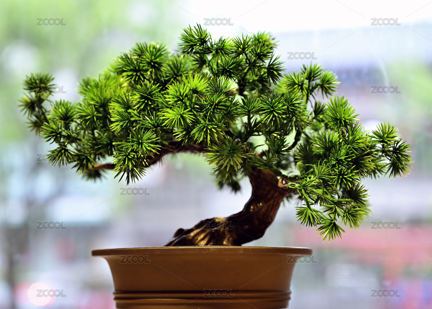 窗臺(tái)上的松樹盆景