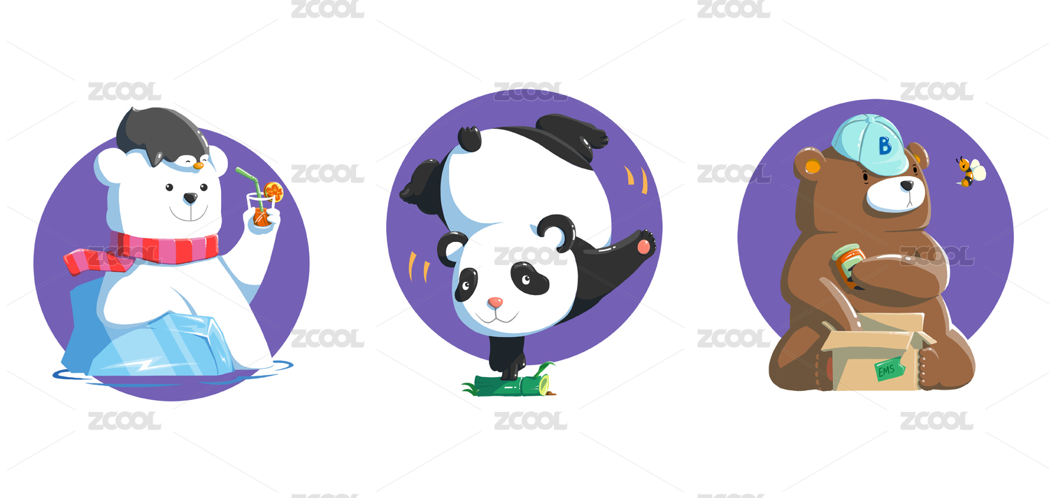 卡通萌可愛的三只熊pandabear