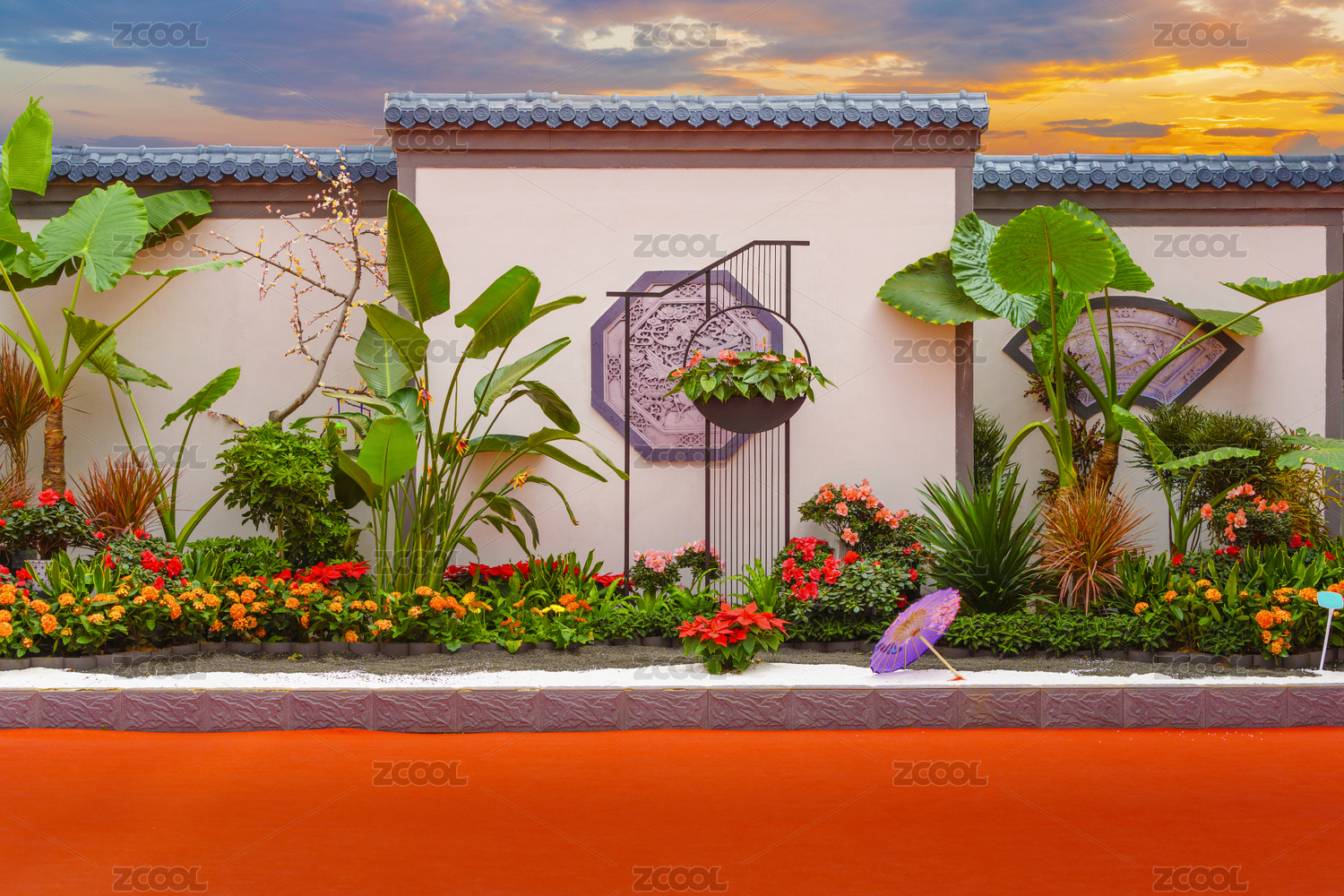 花藝造型中式白墻裝飾背景