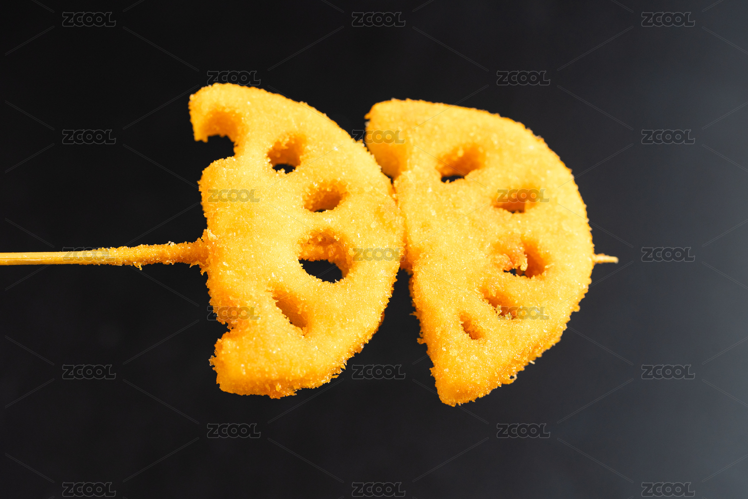 中國(guó)廣西北海街頭美味的炸蝦串和蝦餅零食