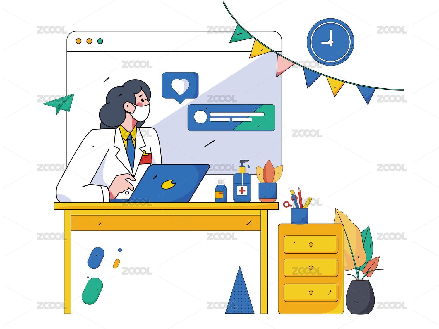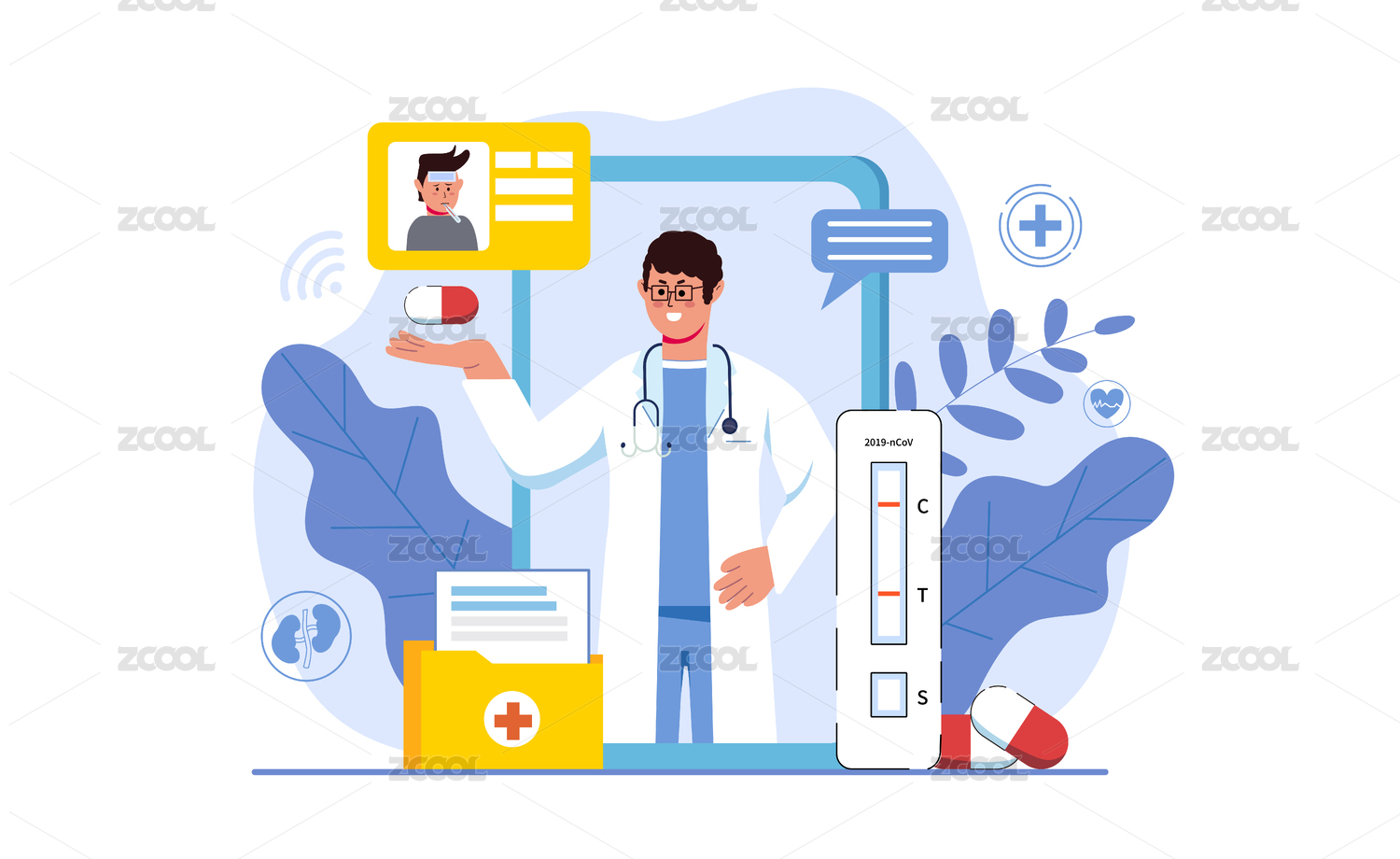 互聯(lián)網(wǎng)醫(yī)療線上看診插畫