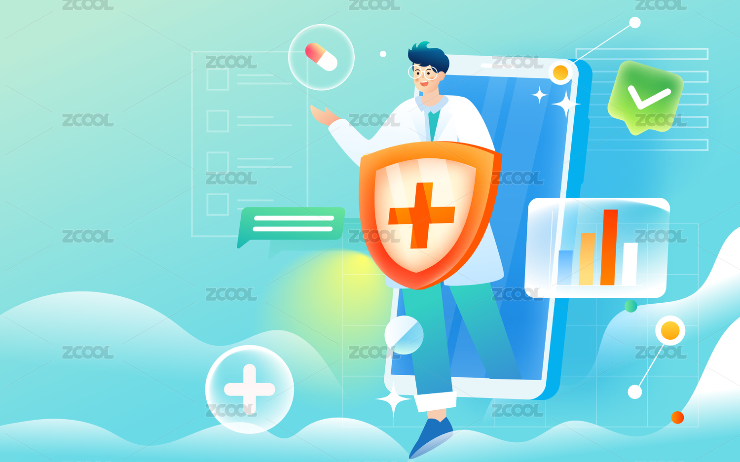 互聯(lián)網(wǎng)醫(yī)療線上看診手機掛號健康體檢插畫