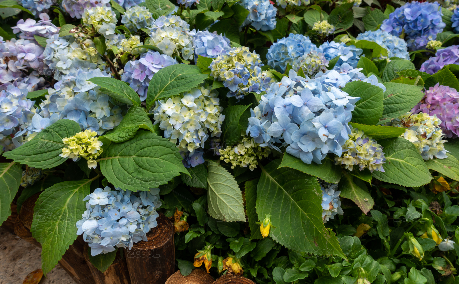 鋪滿地面的天藍(lán)繡球花