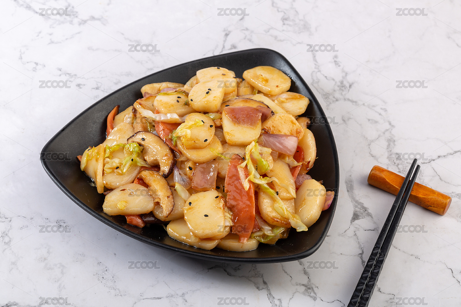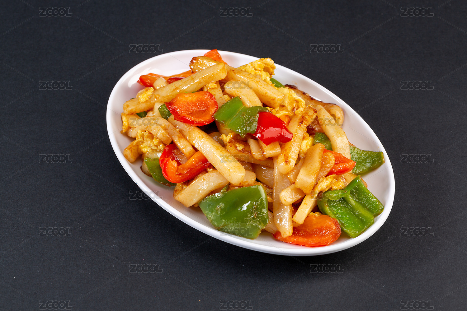 裝盤(pán)的小吃炒年糕