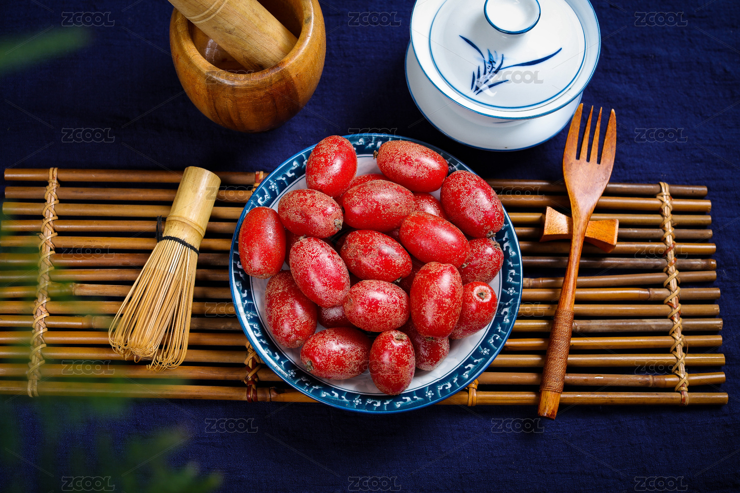 雙拼石墊上放著一堆新鮮云南羊奶果
