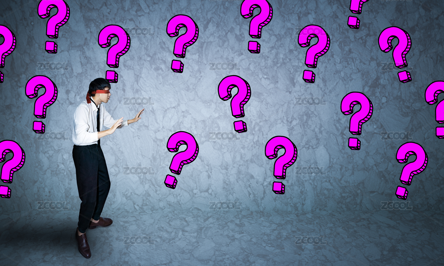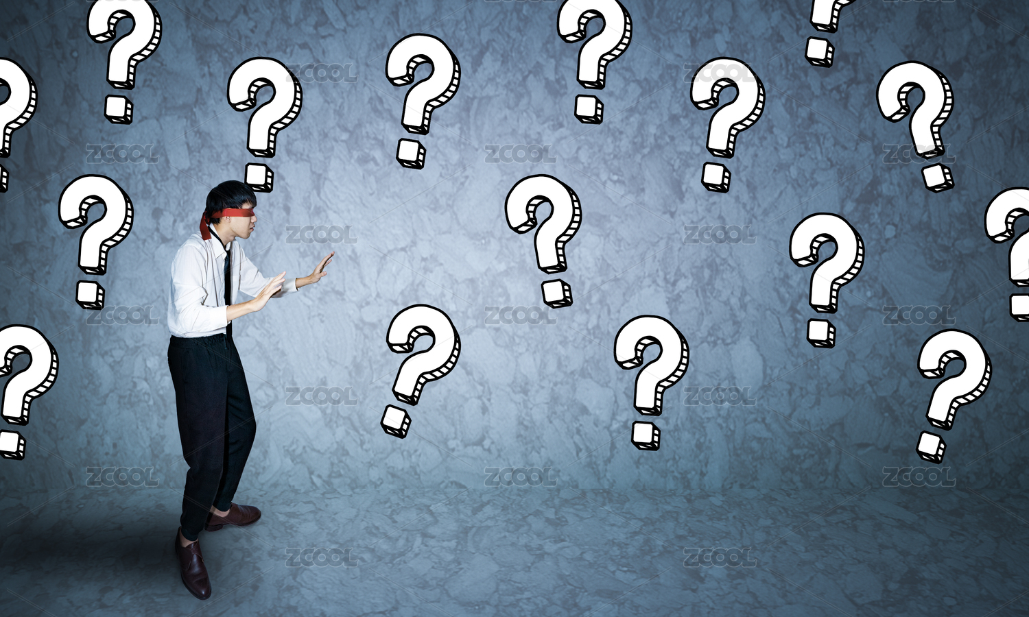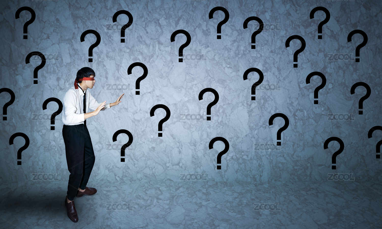 商務(wù)人士職場(chǎng)生活之中迷失方向蒙著眼睛問號(hào)概念