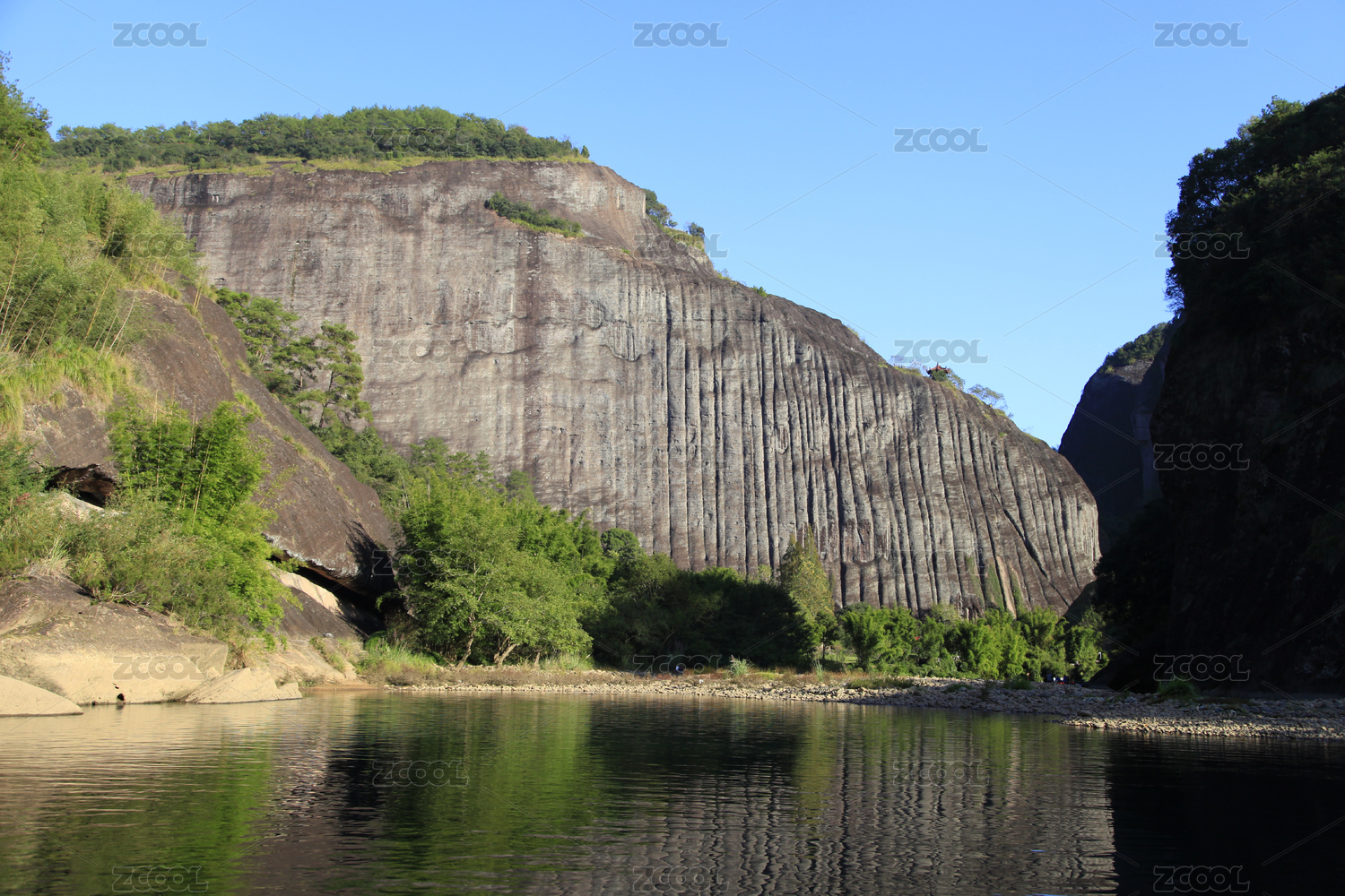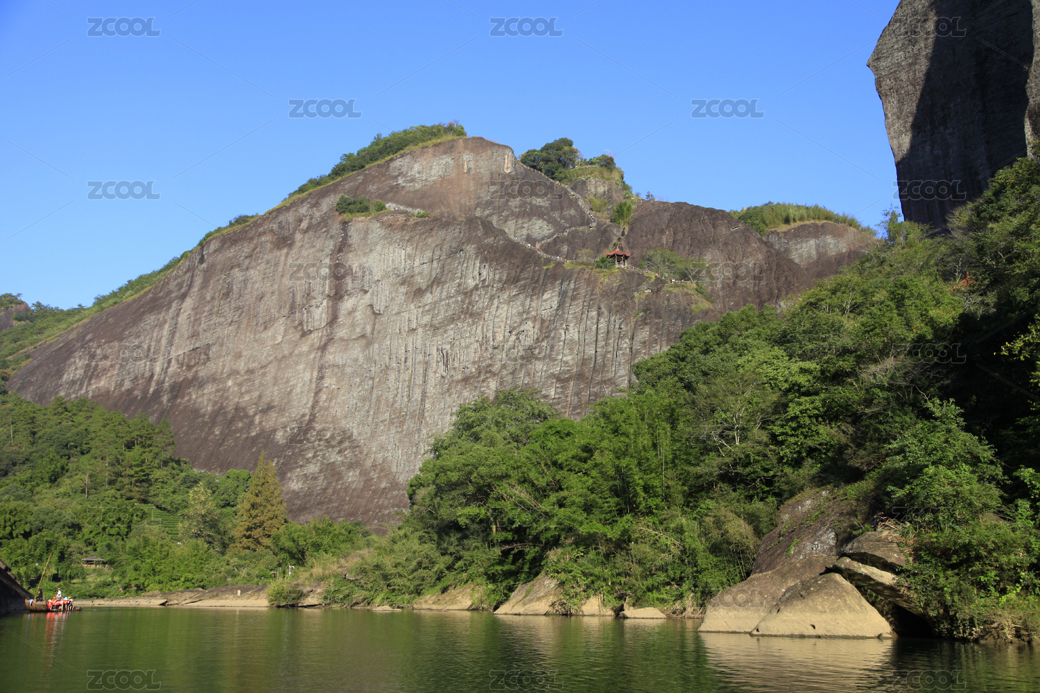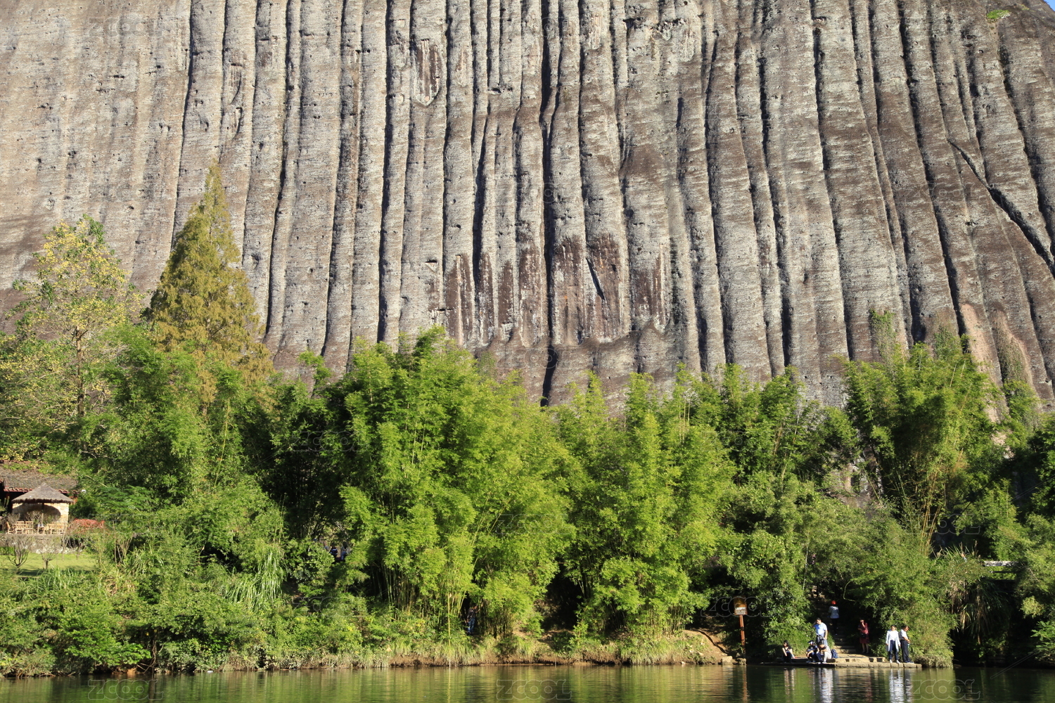 中國福建省武夷山,自九曲溪觀賞巍峨的曬布巖