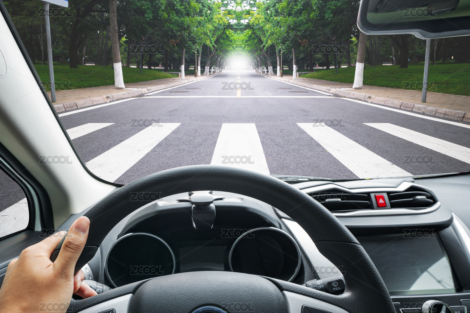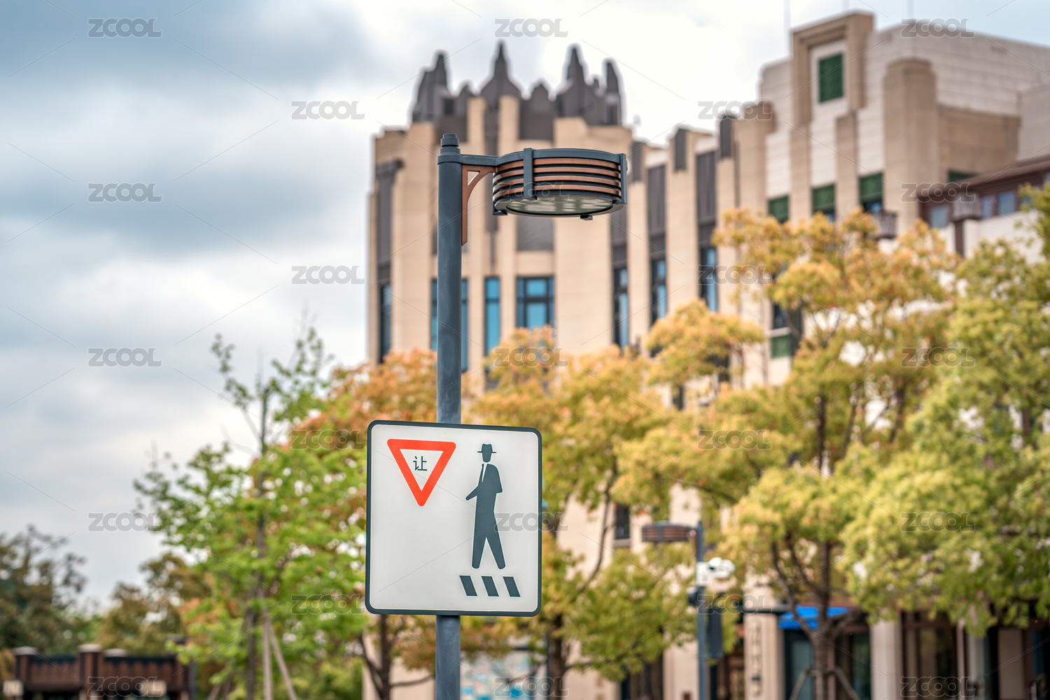 馬路上人行道旁邊寫(xiě)著禮讓行人