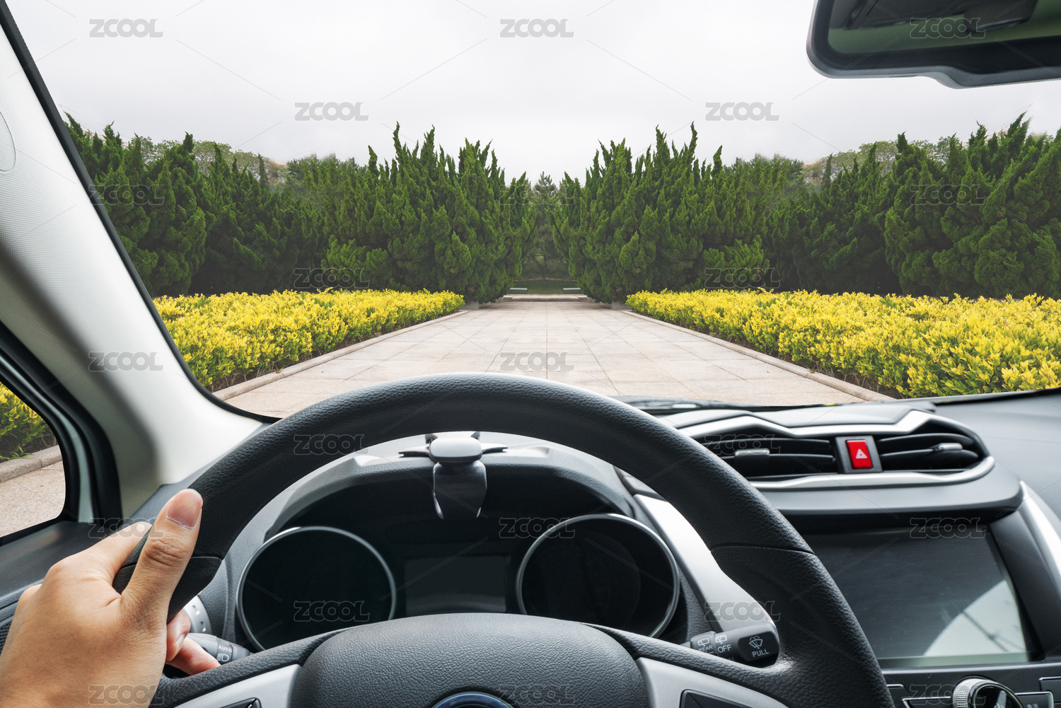 一輛汽車(chē)停在寫(xiě)有禮讓行人的人行道上