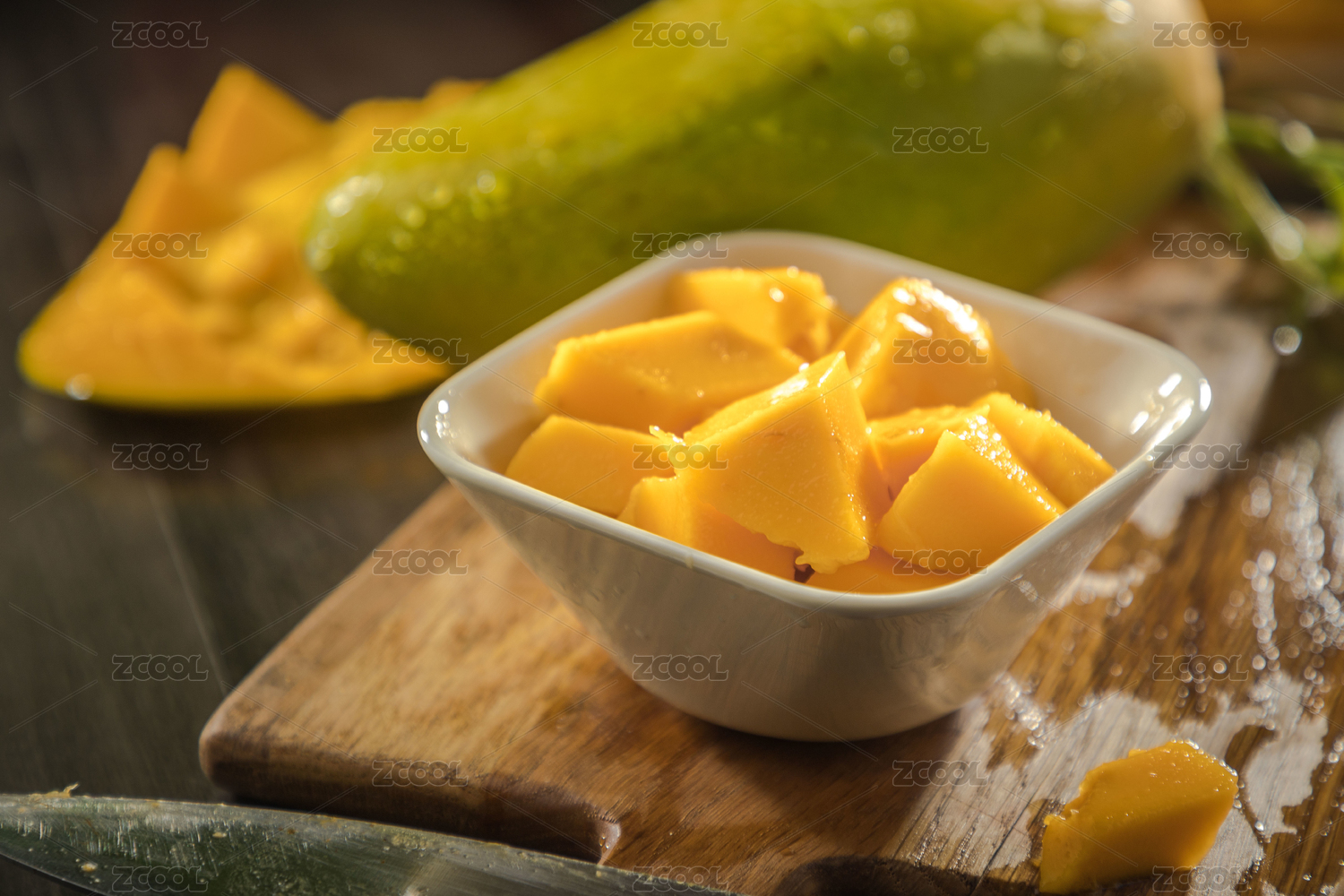 桌上有一塊芒果塊