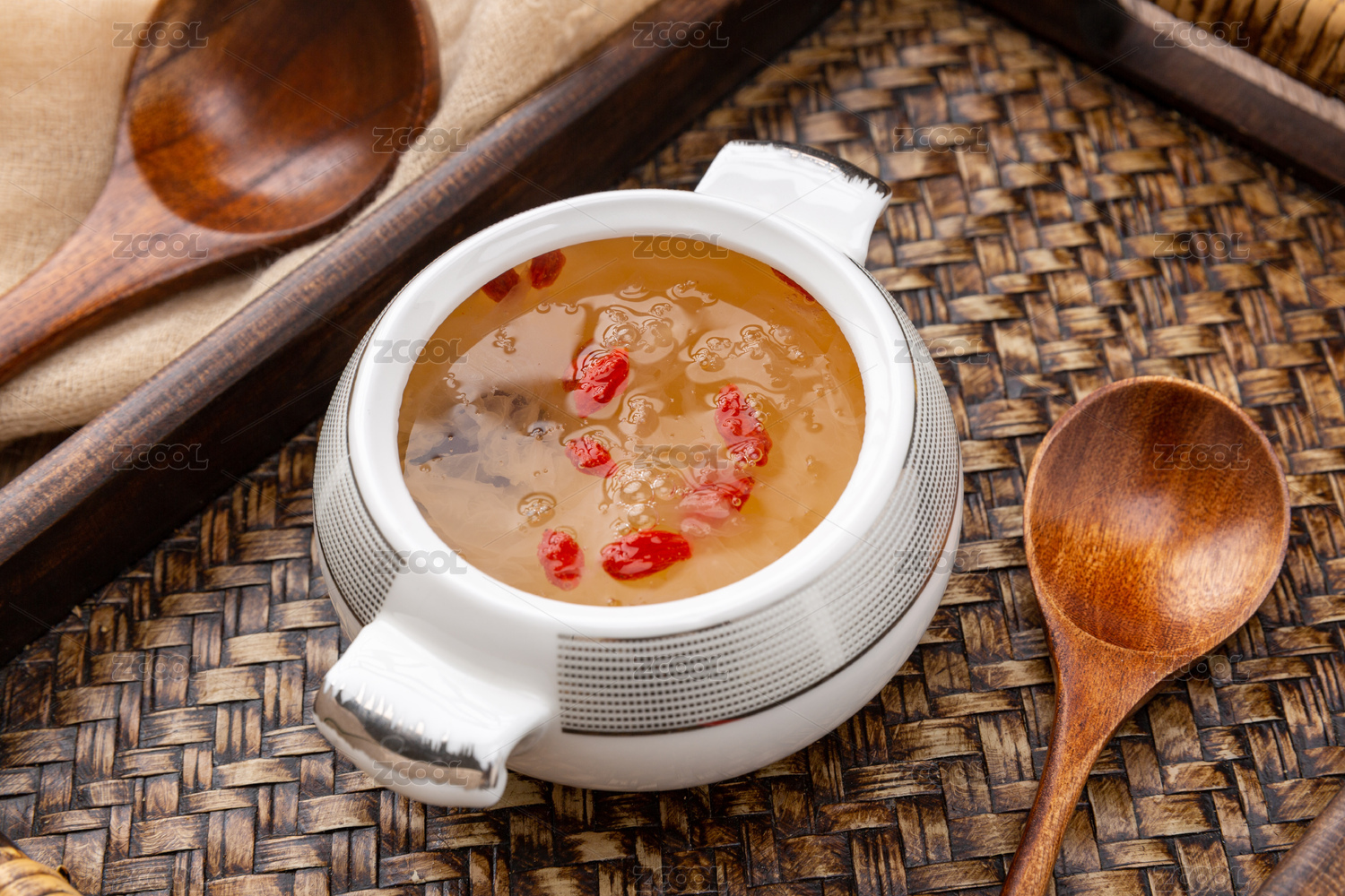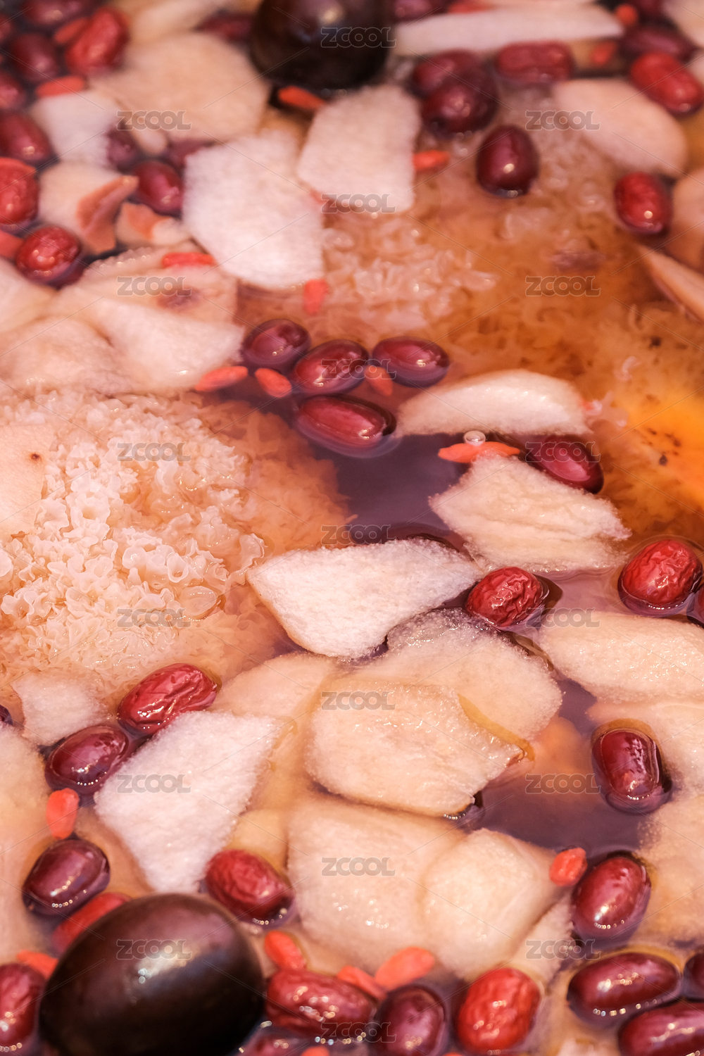 正在煮制的雪梨銀耳紅棗湯特寫(xiě)
