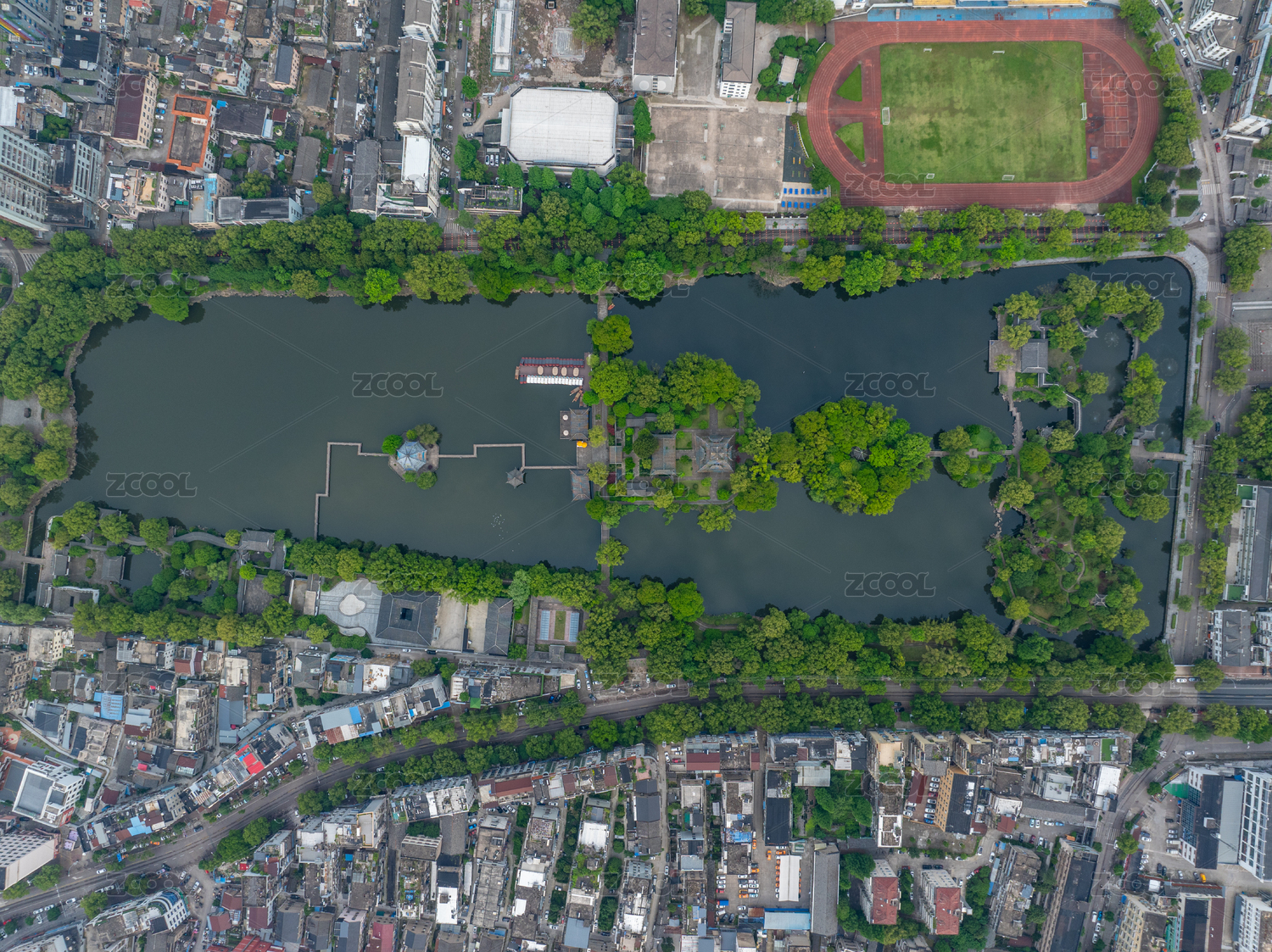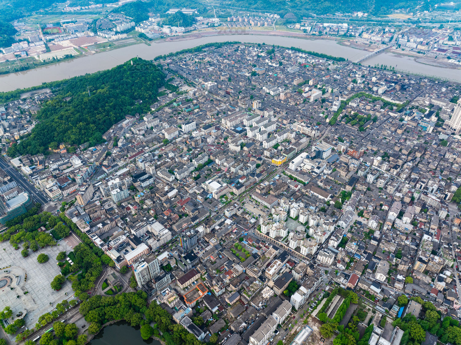 航拍浙江省臺(tái)州市臨海市東湖景區(qū)紫陽古街