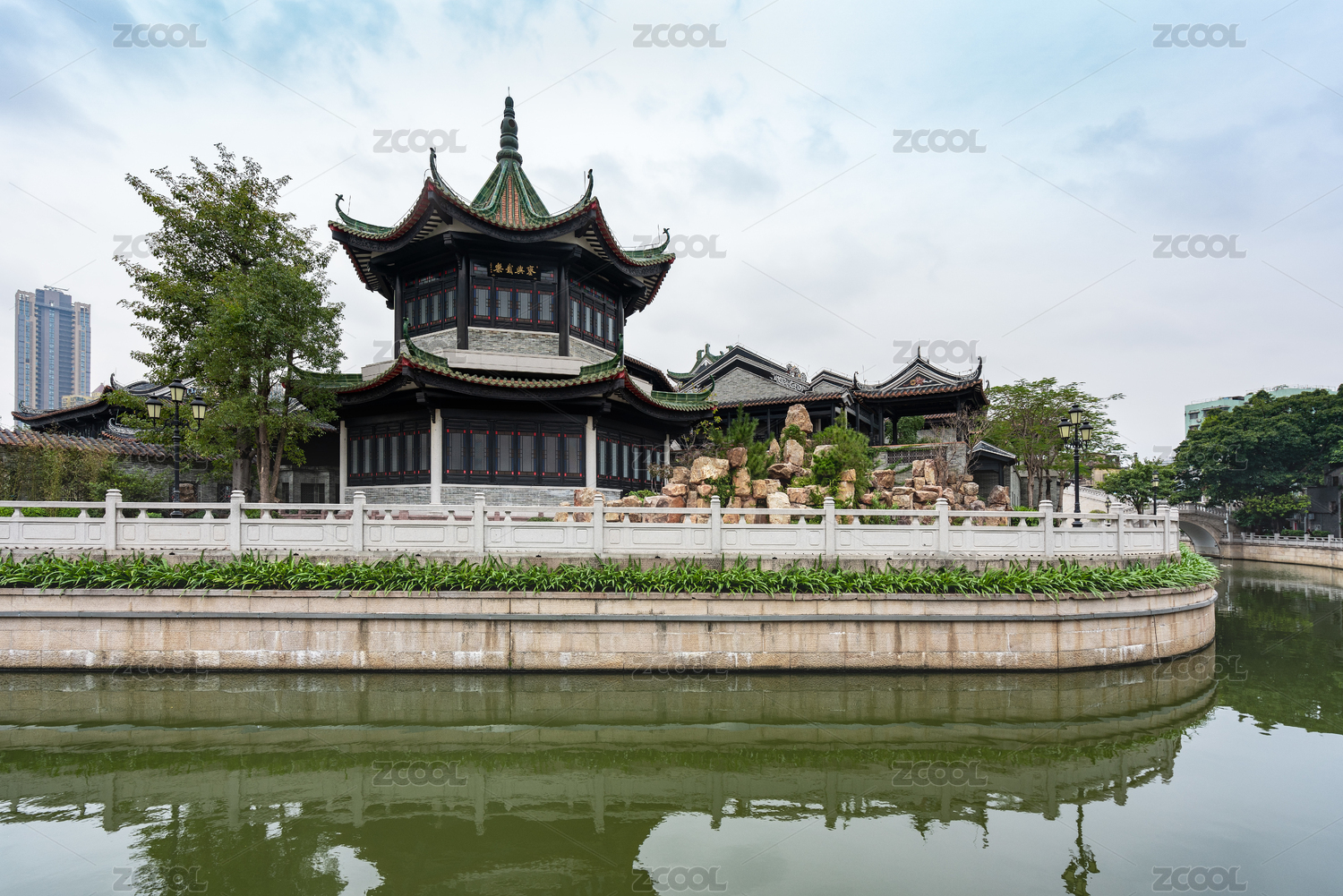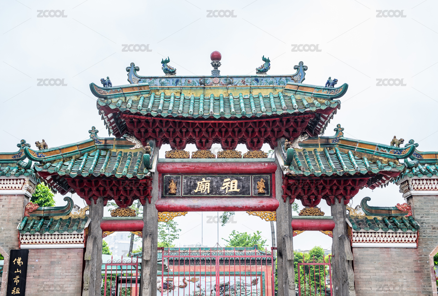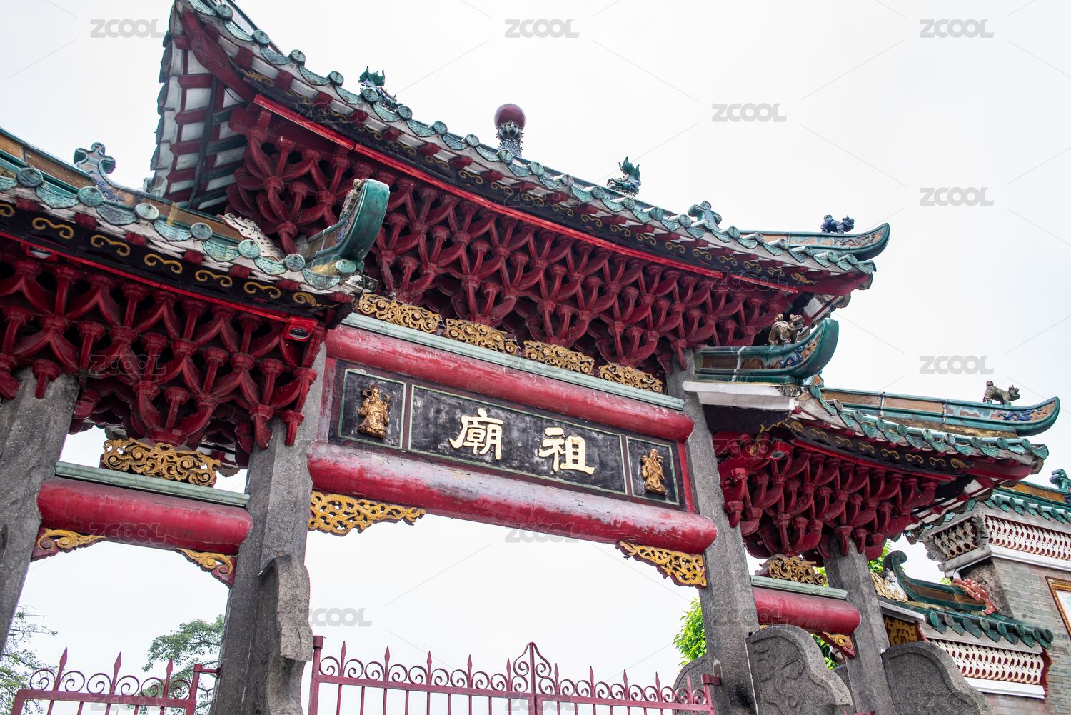 中國廣東省佛山祖廟博物館大門牌坊斗拱飛檐景觀