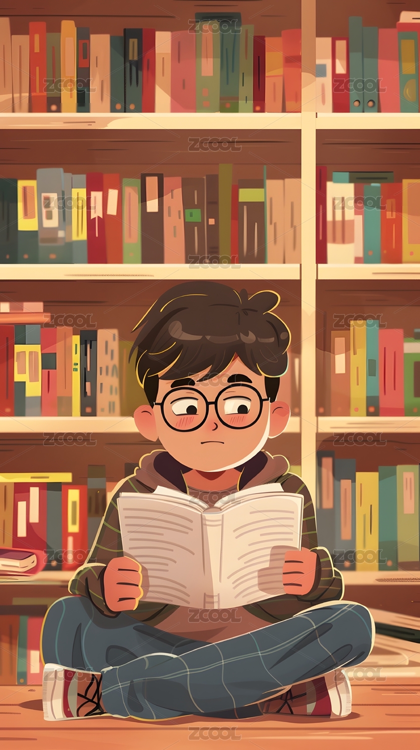 在讀書的中國(guó)古代讀書人士大夫 手繪插畫
