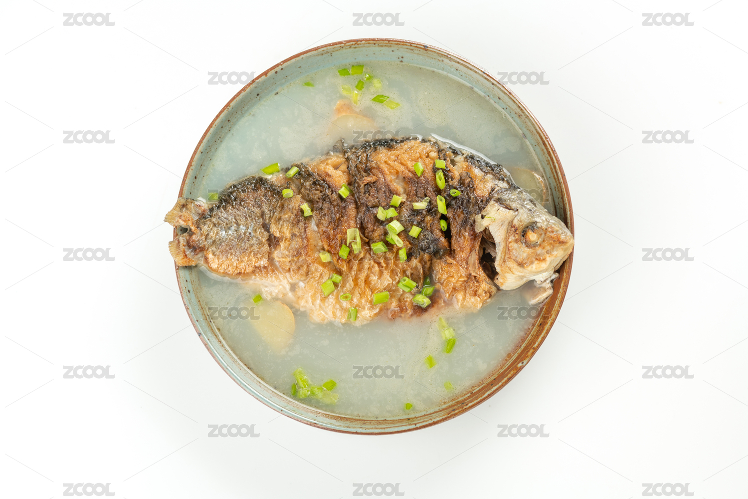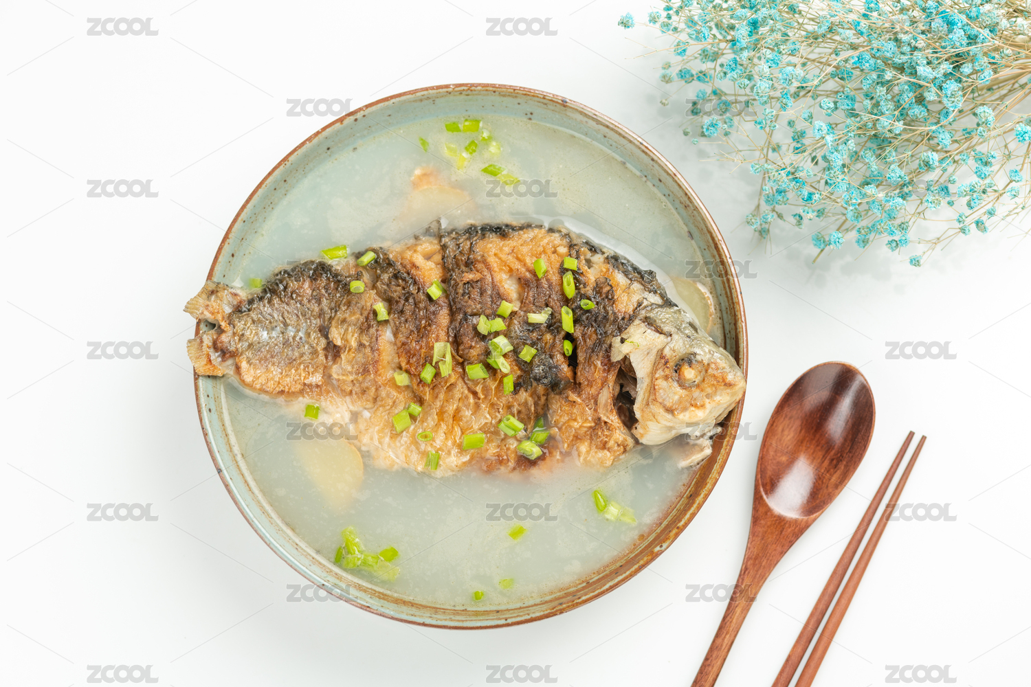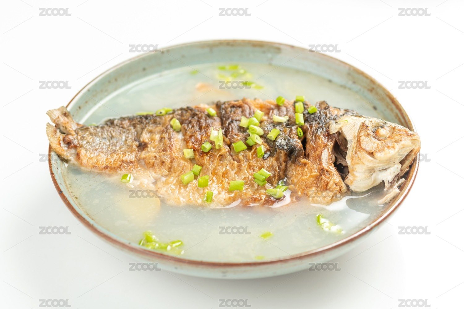 營養(yǎng)美味的鯽魚湯特寫白色背景