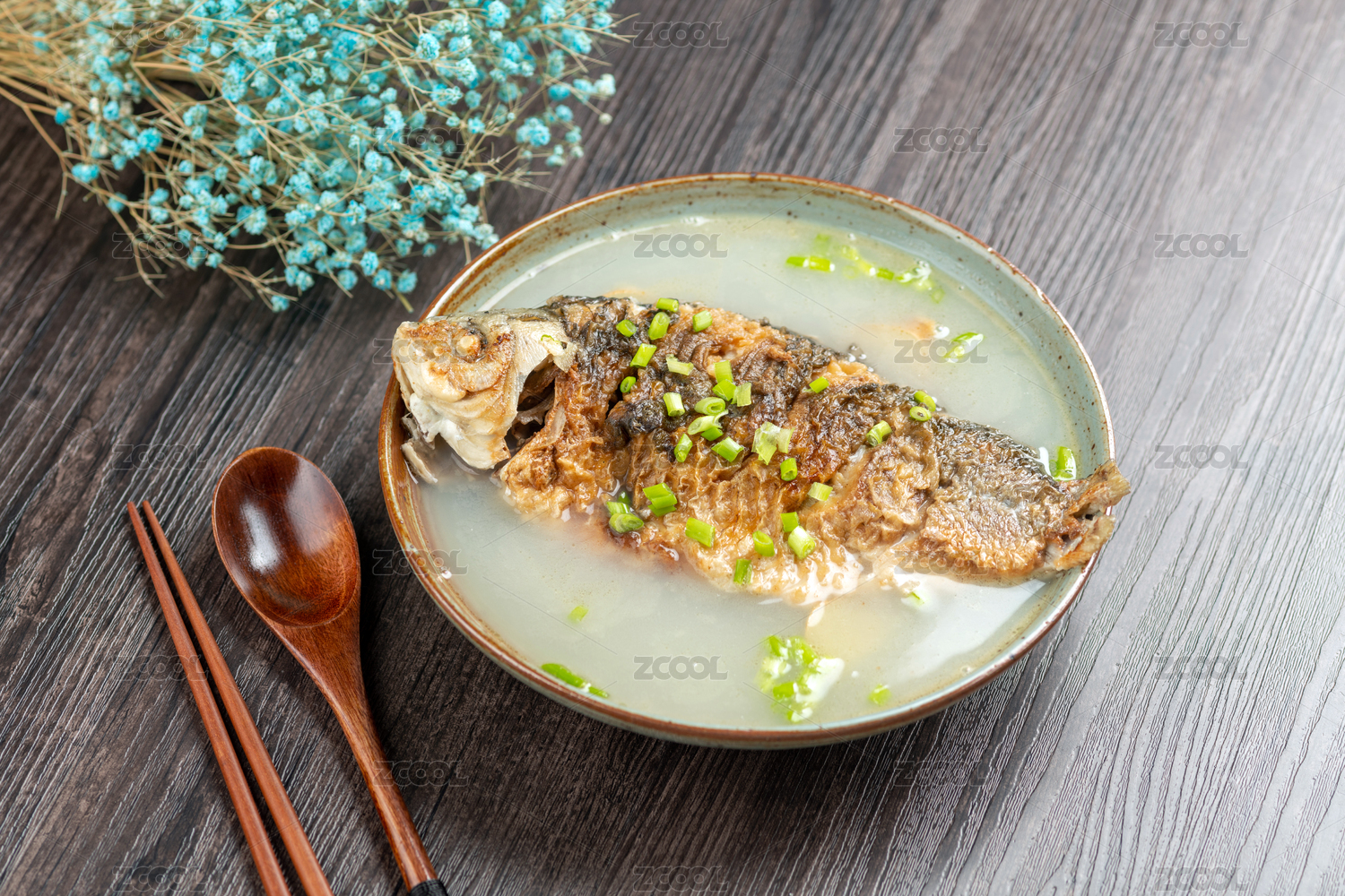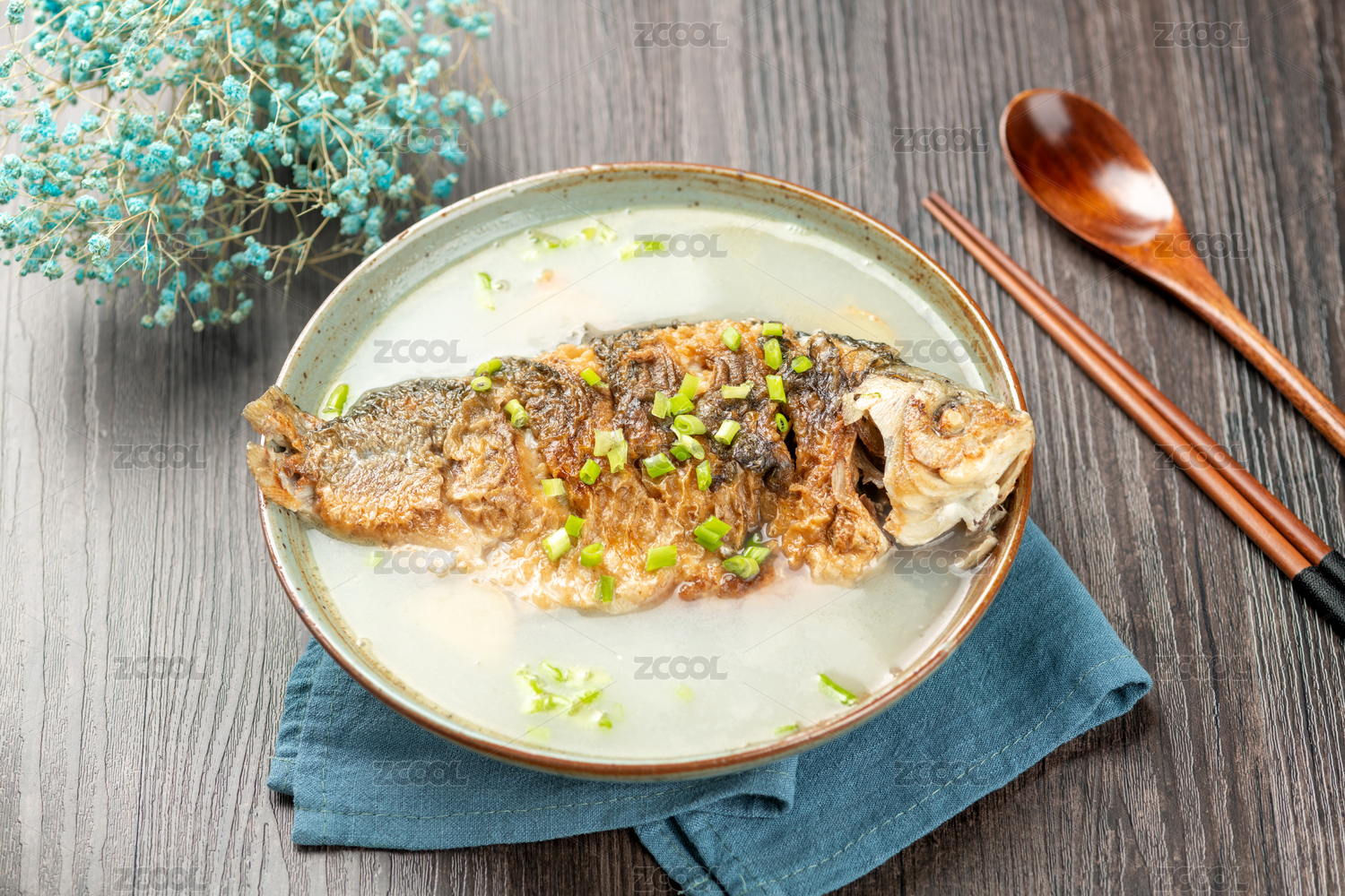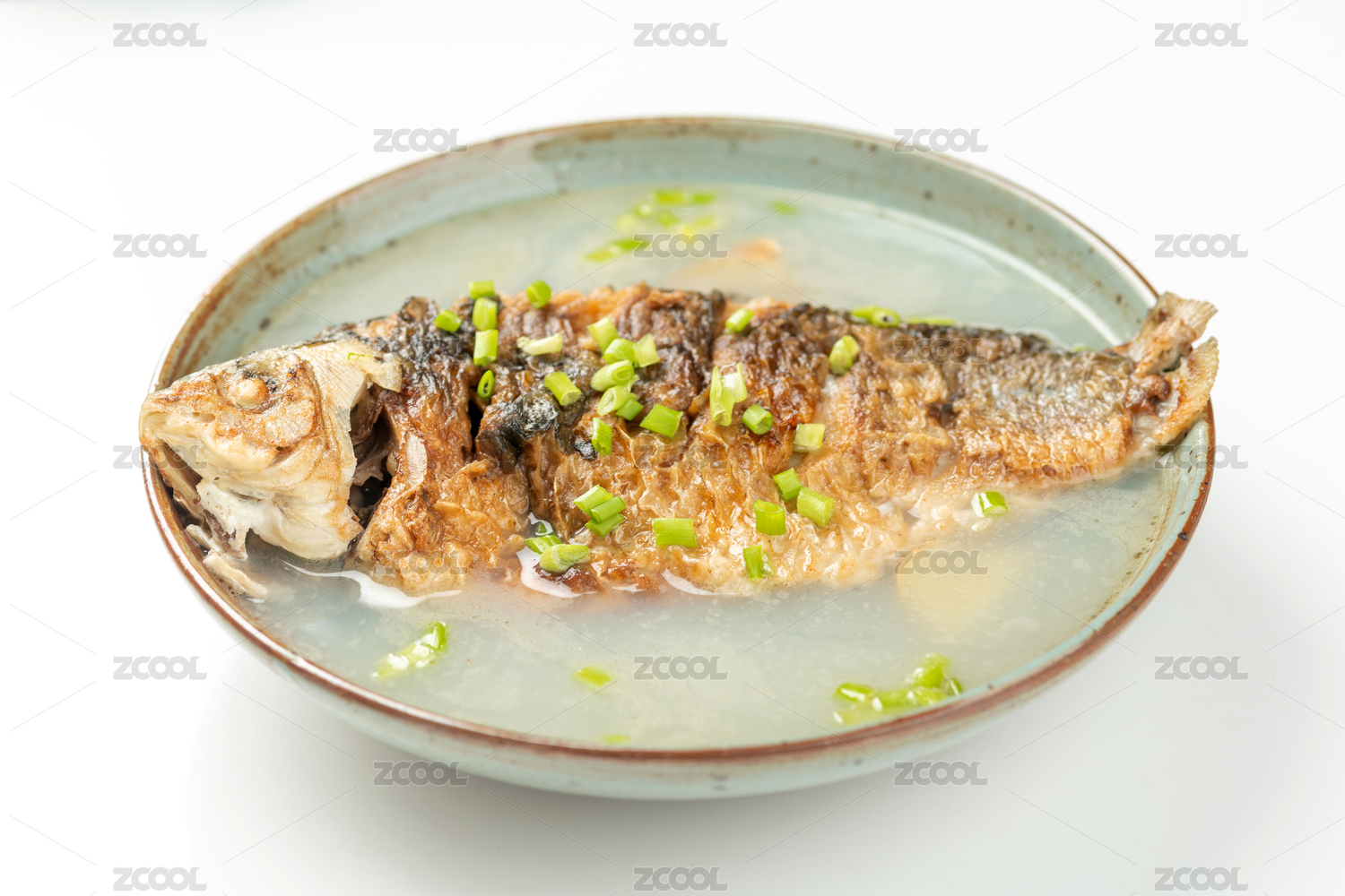 營養(yǎng)美味的鯽魚湯特寫白色背景